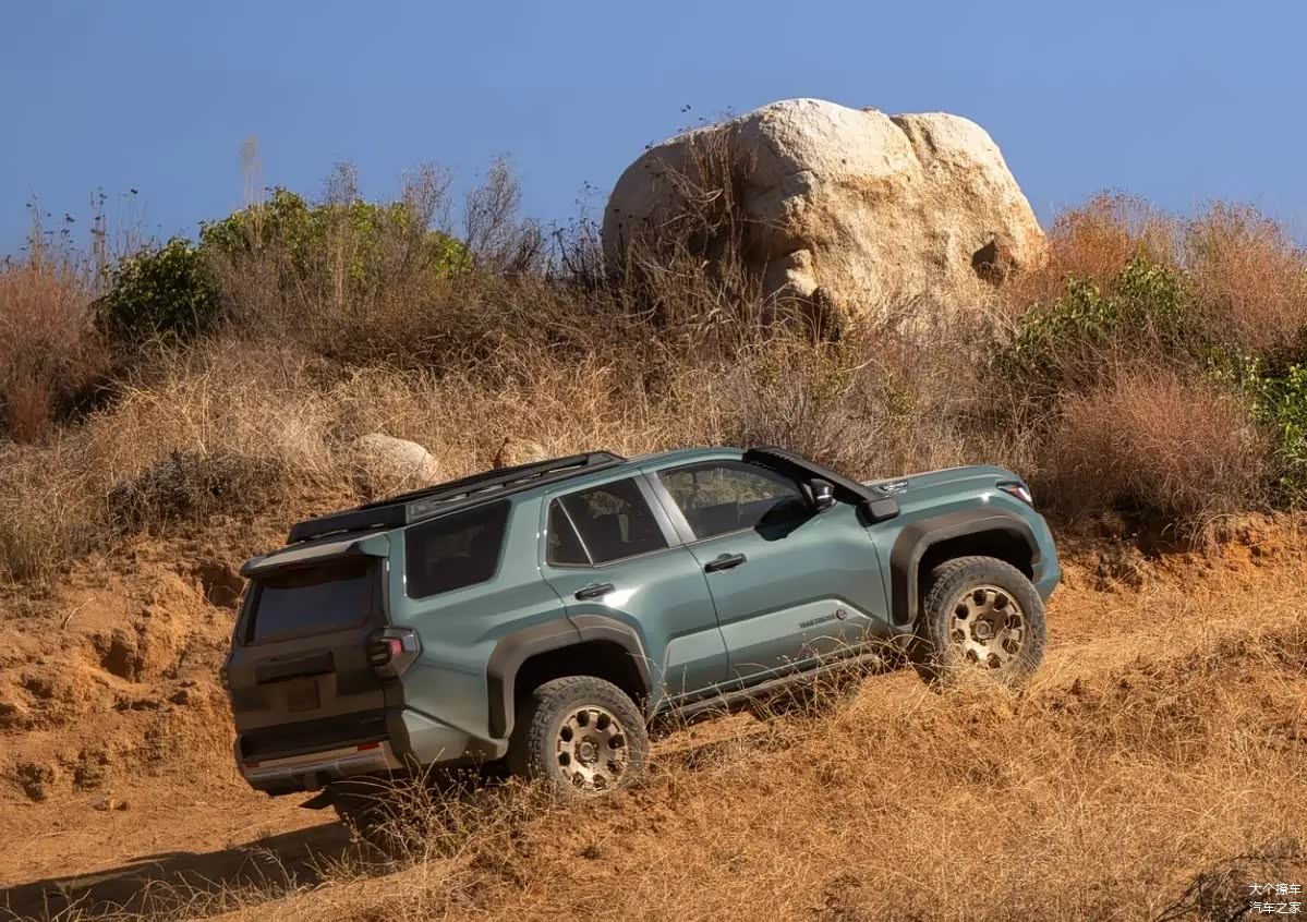 丰田还推出了适应多种地形的选择系统,如攀岩、沙土和泥地等。4Runner推出了一个名为CRAWL的新功能,这可以用于低速越野巡航控制,车辆可以自动输出动力,无需踩油门或刹车,只需调整方向,使得越野变得更为简便,避免因操作失误而陷入困境。4Runner的底盘接近角高达32度,因此在遇到台阶型地形时,无需担心保险杠被划伤,但其缺点是后悬部分较长,离去角为24度,并且后部容易产生剐蹭现象。