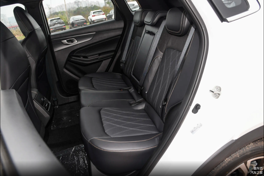 前排座椅采用了一体式的设计,表面应用菱形格的纹理。填充物比较柔软,尤其是头枕部分,整体对于身体的承托比较到位。后排座椅比较宽大,延续了前排座椅的材质以及填充物,后排中央地板接近全平,好评!唯一不足是后排坐垫略短。此外,后排也配备了出风口和两个USB充电接口。