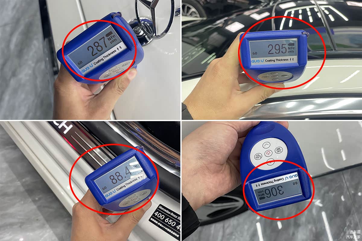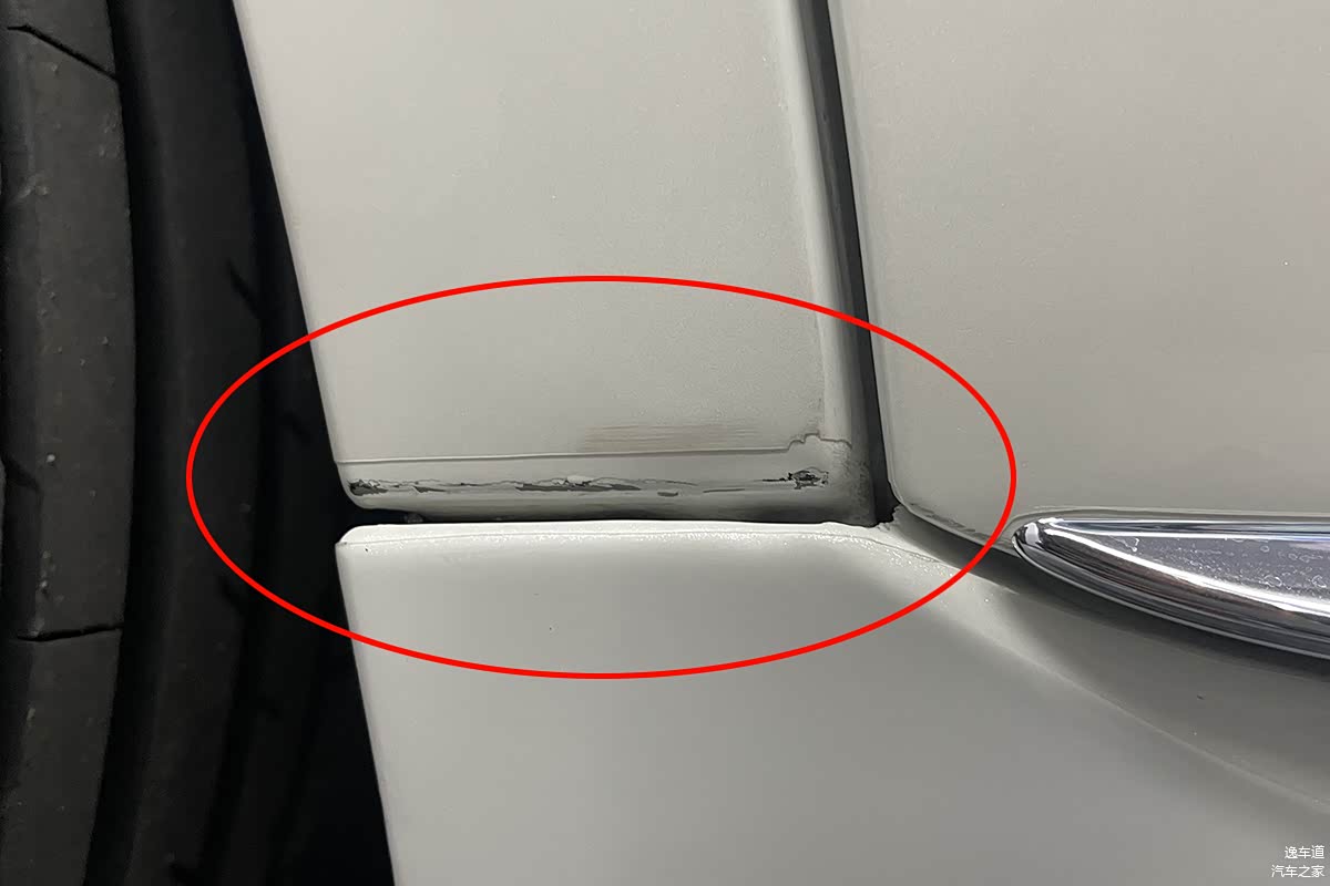 漆膜仪检测外观漆面,数据方面都没有问题。不过在检查到右侧下部的时候,发现了一处瑕疵,看下张图↓