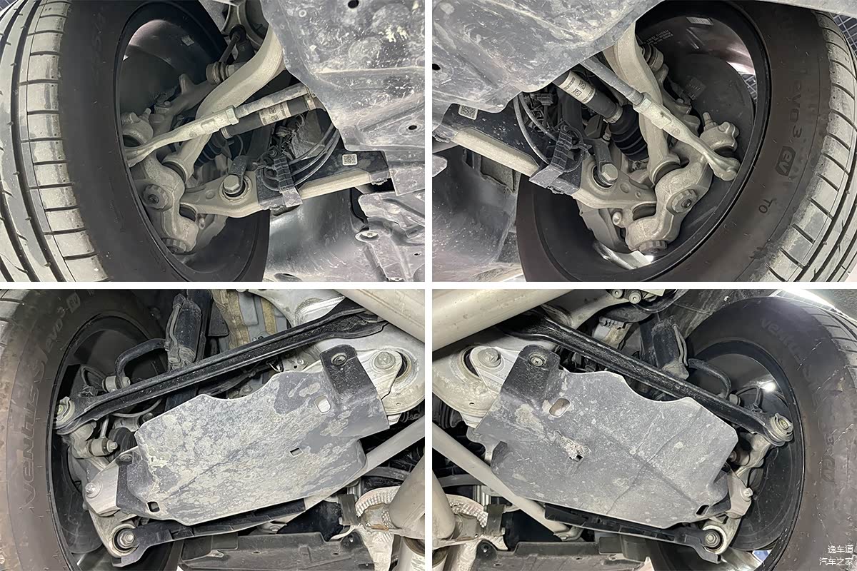 车子升起之后先整体看一遍,主要是检查是否有托底的痕迹,如果有严重的托底,还要进行针对性的检测。