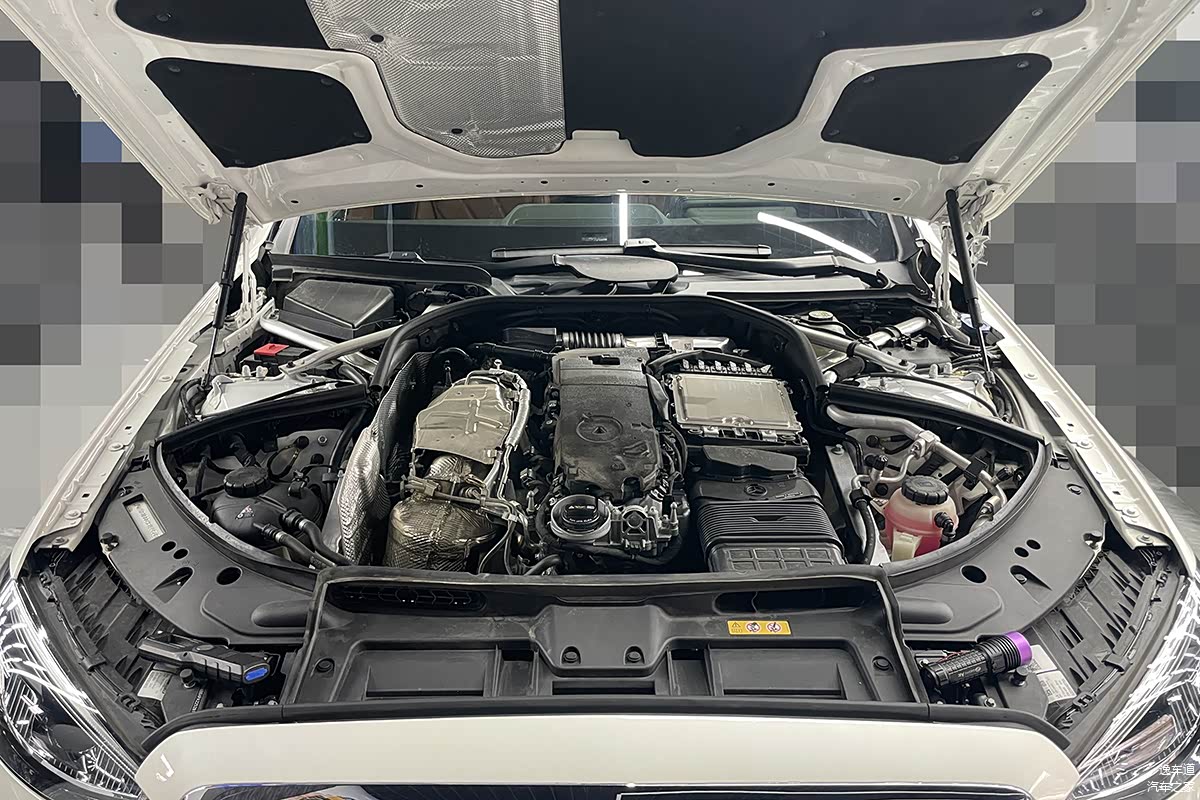 外观检测完之后我们开始检查发动机舱,S480搭载是一台3.0升的直列六缸发动机,双涡轮增压,还搭配的48V轻混。很多人觉得这个排量太小了,不够用,但是我想说的是,你只要不起飞,绝对够你用了!