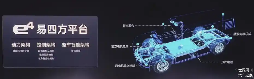 首先,仰望U7搭载易四方平台,提供纯电版和插混版车型可选。其中,纯电版车型匹配四电机四驱系统,最大综合功率956kW,官方零百加速2.9秒,最高车速270km/h,匹配135.5kWh高性能刀片电池,最大充电功率500kW,CLTC纯电续航为720km;插混版车型配备由2.0T发动机+四电机组成的插混系统,发动机最大功率200kW,四电机综合功率1000kW,电池组容量为52.4kWh,CLTC综合续航可达1000km。