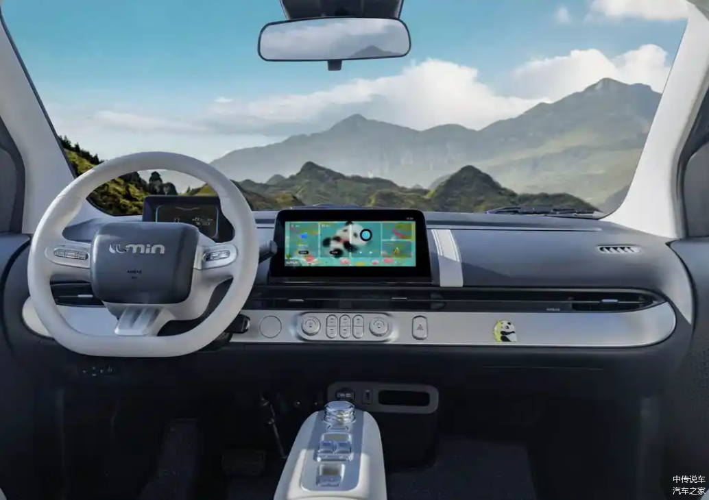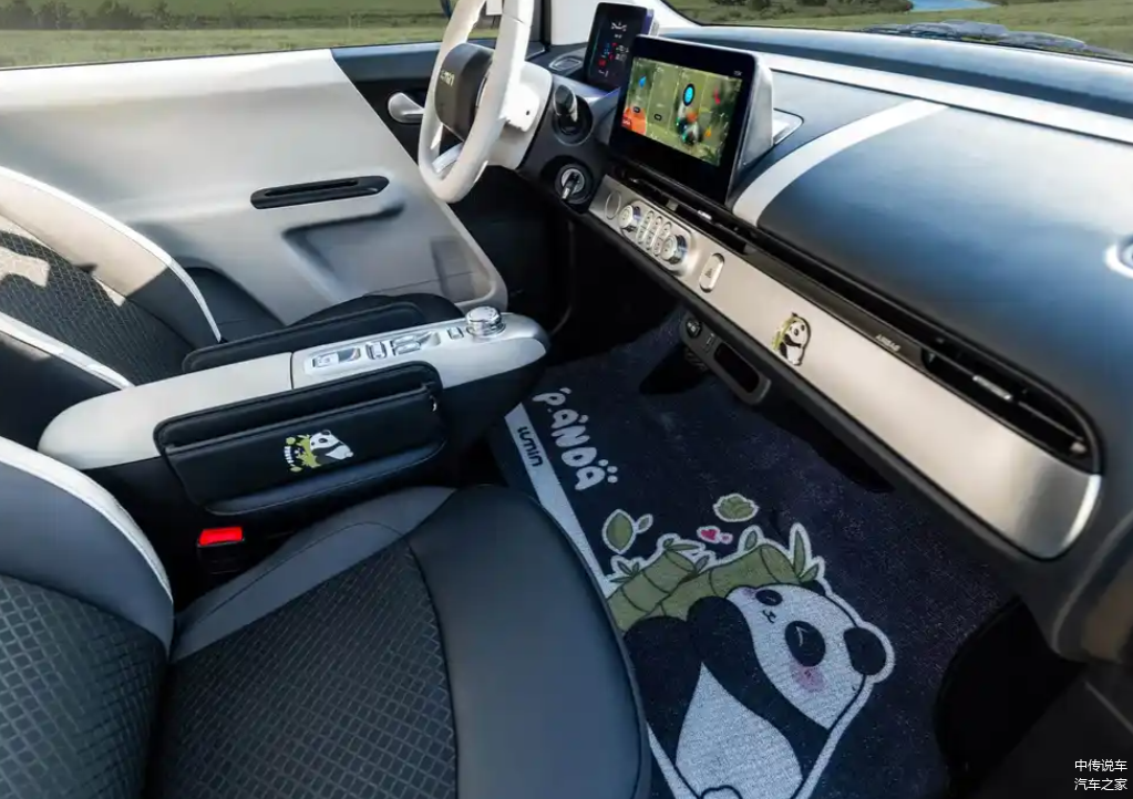 内饰方面,长安Lumin萌宝版没有明显变动,依旧提供三幅式平底多功能方向盘、悬浮式液晶仪表盘、悬浮式中控屏以及旋钮式电子档把,科技感十足。黑白配色搭配熊猫印花头枕和定制脚垫,与外形相呼应,熊猫元素满满,让车内充满了温馨可爱的氛围。
