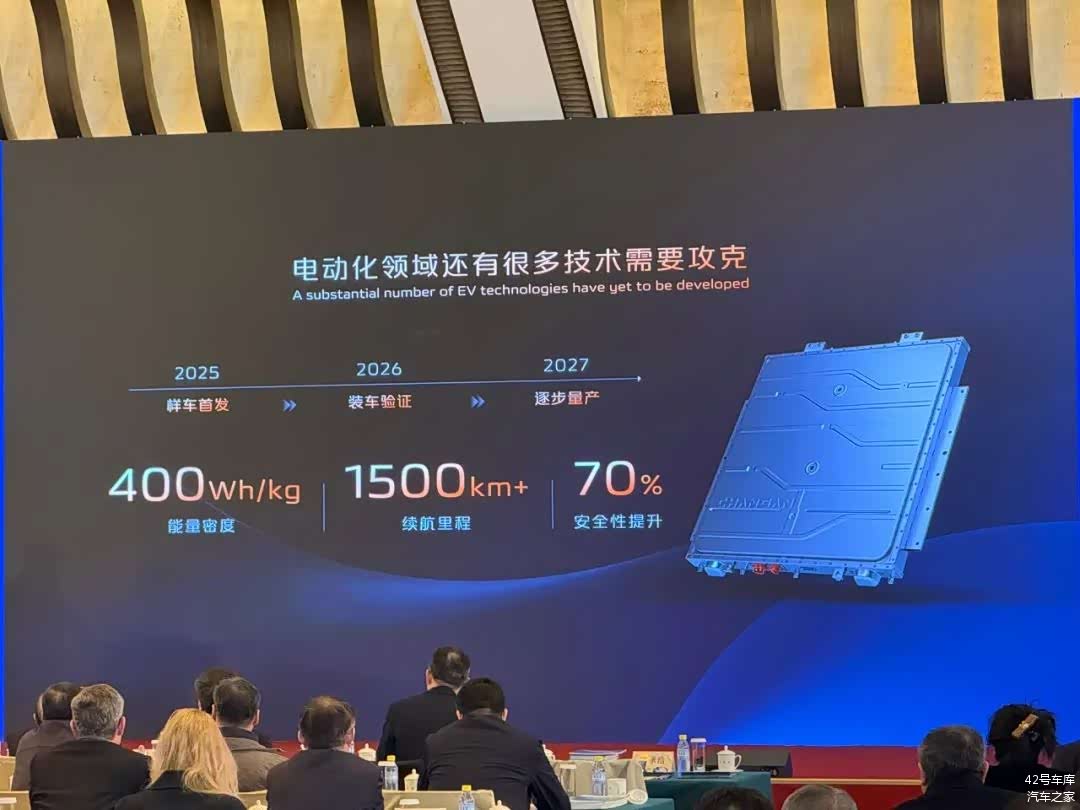 在电动化方面,长安汽车计划量产固态电池,今年将发布样车,2026 年装车验证,2027 逐步量产。邓承浩表示,长安汽车的固态电池可以实现 400 Wh/kg 的能量密度,这让车辆续航达到 1,500 km 以上,同时让安全性提升 70%。