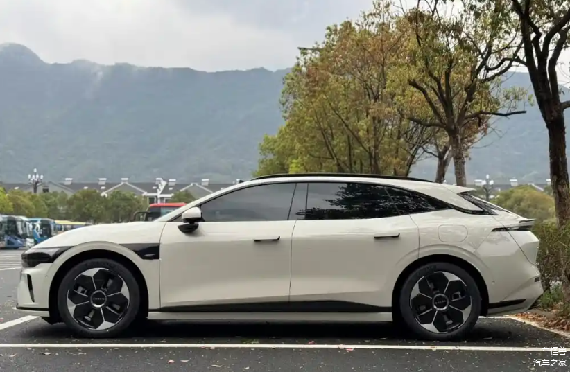 从车的侧面看,猎装的设计风格呈现得非常完美。平坦的车顶曲线在B柱的背后逐渐下沉,营造出一种轻微的溜背视觉效果,既美观又实用。这款新车配备了无框车门、隐蔽的门把手、大尺寸的低风阻轮毂和撞色刹车卡钳等多种配置,实现了时尚与运动之间的完美融合。尖锐的侧裙和前后宽大的轮眉设计相互呼应,这进一步加强了车辆的运动感。熏黑的一体式车顶和双色车身是可选的,加上车顶行李架的加入,使得新车更加具有跨界的特色。