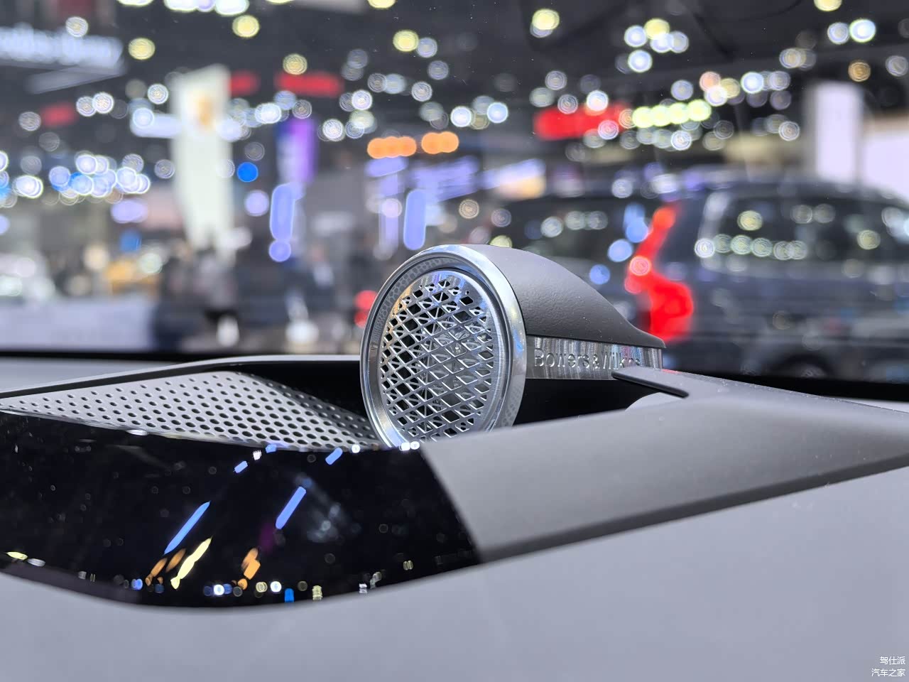作为一款旗舰豪华车型,我觉得沃尔沃EX90对车内细节的营造上真的很棒——可以看到宝华韦健音响采用密织花纹的金属饰板;同时在车内非常克制地使用亮黑饰件以及银色的勾勒。而且EX90的多媒体旋钮的设计太精致了,外围是一圈类似于金属的竖状纹路,里面是黑色饰圈,然后最中间是一种白色透明的、类似于盾牌形状的微雕。