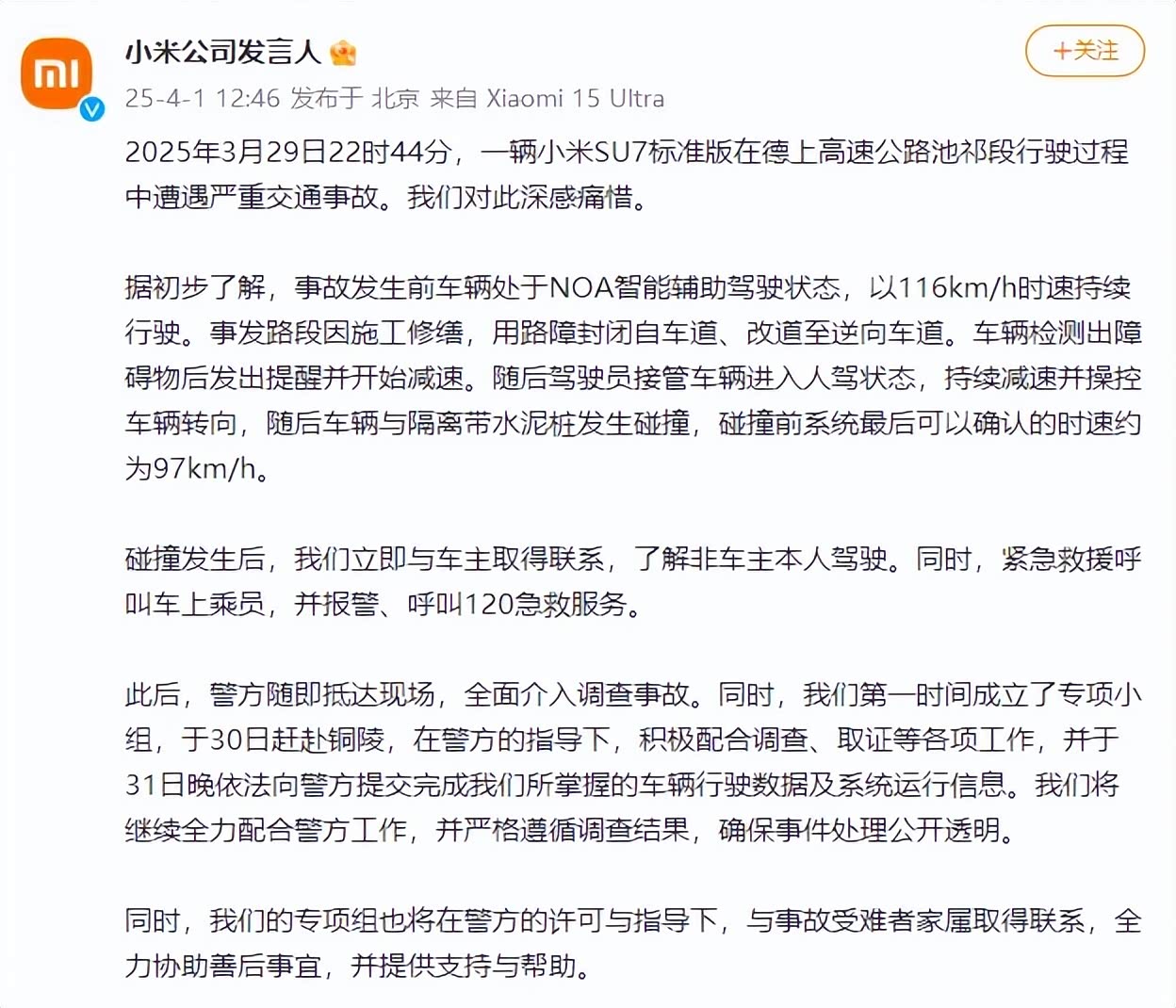 3月29日,一辆 小米SU7(图片 | 参数 | 询价)标准版车型,在发生高速碰撞后出现了电池热失控的故障。在电池热失控之后,火势迅速蔓延至全车,车内三名女生被困。很不幸,此次事故造成了车内驾乘者全部遇难,让人扼腕叹息。