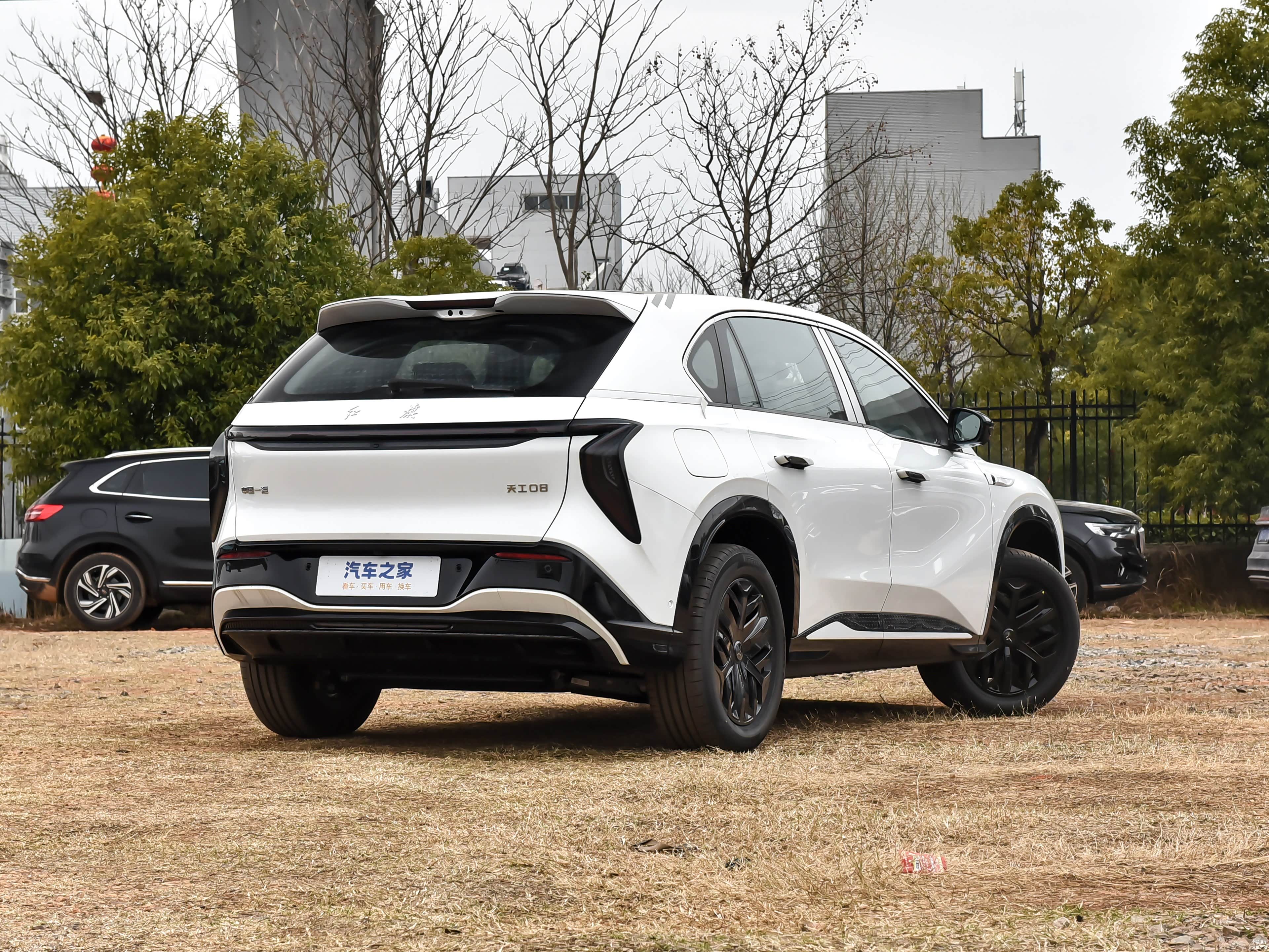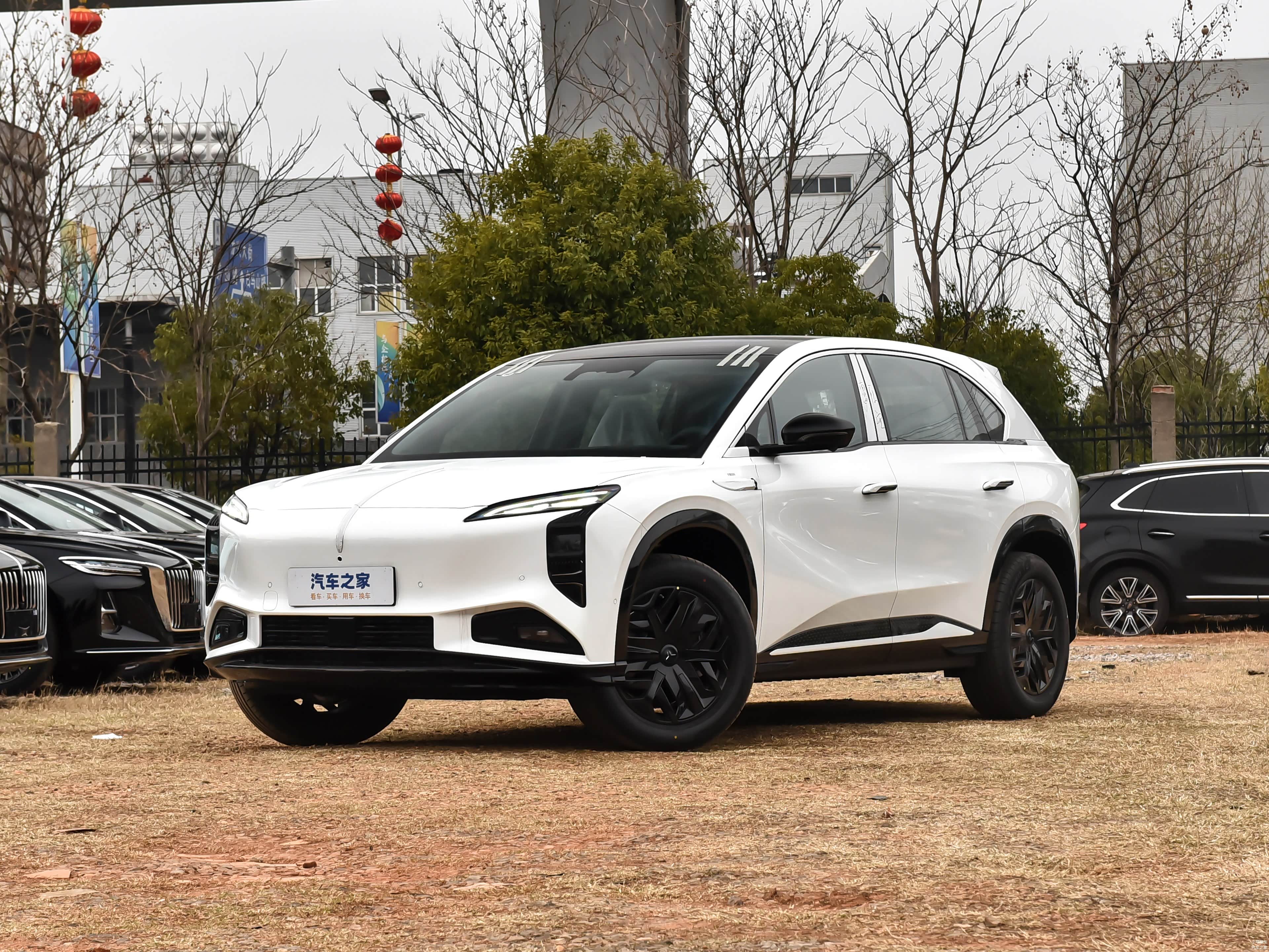 侧面造型方面,车顶带着明显的弧度,线条感显得比较圆润,腰线采用了分段式设计,点缀出了车身侧面的层次感;门把手采用的是弹出式设计,能够起到降低风阻的作用;轮眉和侧裙部分设计有隆起的黑色饰板,凸显了力量感;轮毂采用了五辐式熏黑造型,风格还算大气。