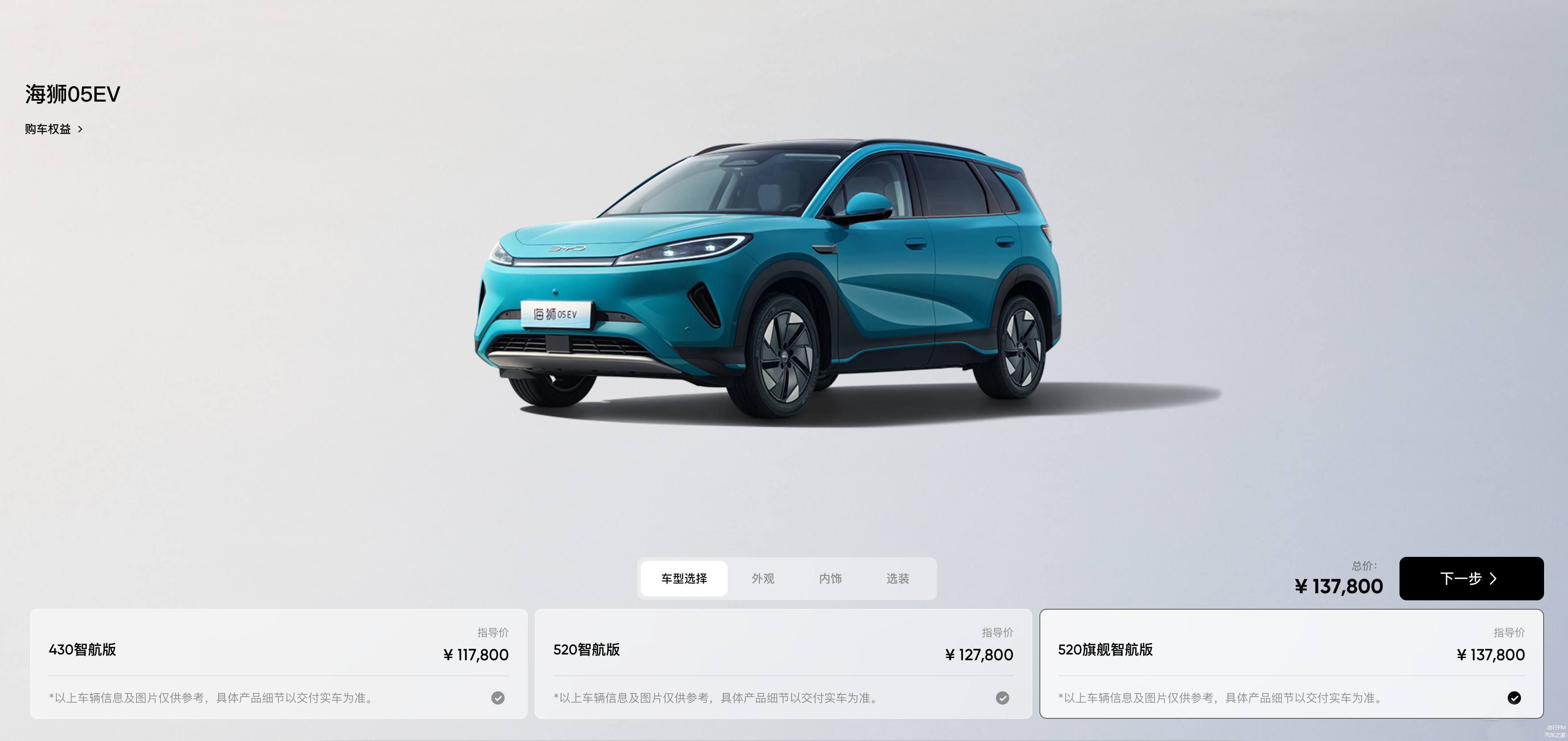 比亚迪海狮05EV在2025年3月25日正式上市,它定位为紧凑型纯电SUV,基于e平台3.0 Evo打造,售价区间为11.78万-13.78万元,共推出3款配置车型(430KM智航版、520KM智航版、520KM旗舰智航版)。新车以“高阶智驾+百项标配”为主要卖点,竞品上直接对标丰田铂智3X、吉利银河E5等竞品。