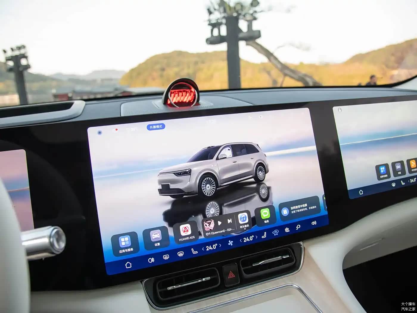 车内的装饰与问界M9有许多相似之处,但其他方面并不突出,只是那黑色的边框显得稍显宽阔。