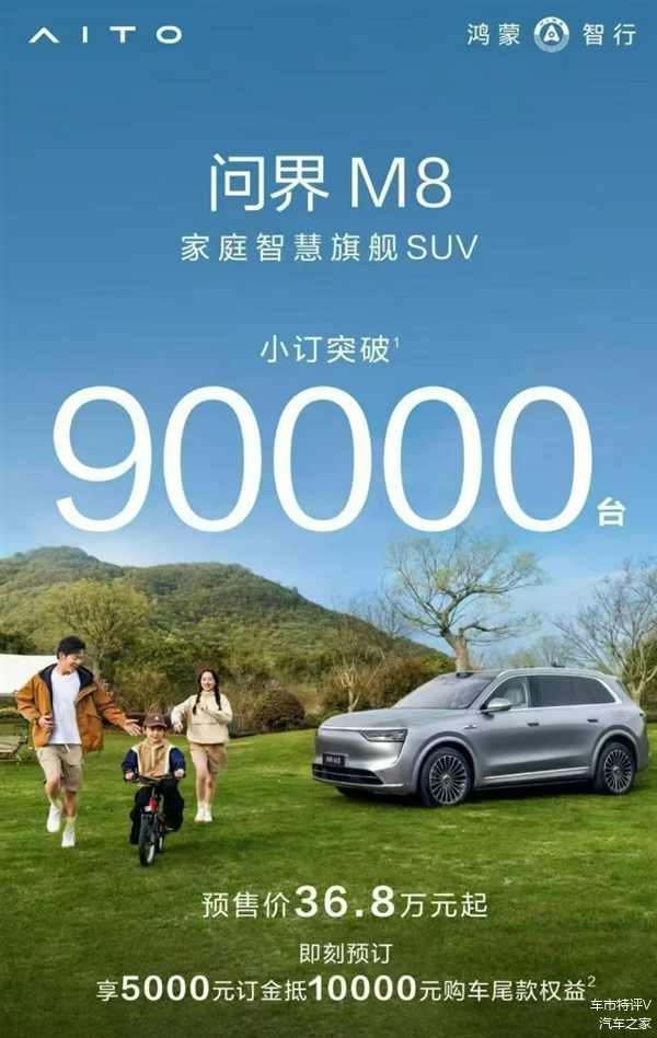 华为又一大爆款来了,从目前预售小订形势来看,它很有可能又会成为下一个爆款车。根据AITO官方披露的信息来看:还未正式上市的全新问界M8,小订订单量已破9万辆,足见其火爆程度。