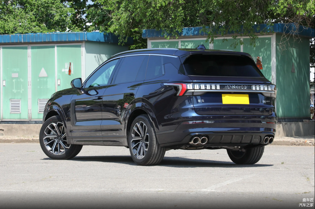 平直的车身线条十分简洁大气,主副驾车门处还有类似鲨鱼腮样式的进气口,运动气息丝毫不弱,银色的搭配视觉效果十分出众。搭载了个性十足的20英寸锻造轮毂,颇具运动感,而轮胎则选用来自马牌的轮胎,轮胎尺寸为275/45 R20,放在这样一台中大型SUV上也在情理之中。另外,车尾部分依旧采用了领克家族化设计,在细节经过打磨和设计后,视觉感受更为突出。而领克的英文标识与尾灯融合,形成一种贯穿式尾灯的设计,左右两侧红色的灯源类似于回旋镖的样式,整个灯组在点亮后有着不错的辨识度。下方采用双边四出排气设计,不仅看上去更加协调,还能为车尾增添些许运动感。