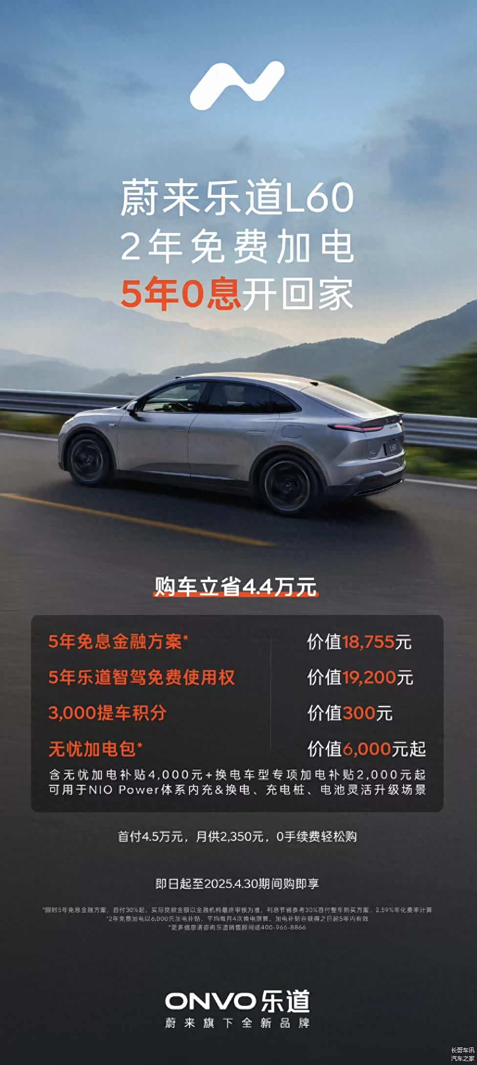 日前,乐道汽车正式发布了4月购车权益政策,为潜在消费者提供了多项优惠措施。活动时间为即日起至4月30日,在此期间购买乐道L60的用户可享受一系列权益,包括2年免费加电、5年0息购车金融政策、5年乐道智驾免费使用权以及3000提车积分。