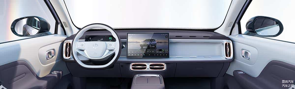 P7的内饰设计显得较为厚重,中控台加入了可以点亮的星纹饰板,中央12.8英寸和10.25英寸的瀑布式双智能屏比较亮眼。