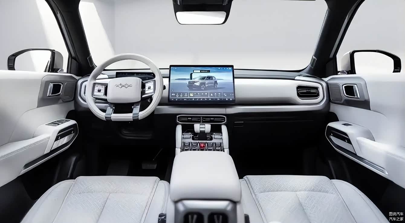 钛3的外观非常个性,采用“星际战车”设计概念,整车棱角分明,全车底部有粗犷的磨砂套件包裹,轮眉上方还有宽体造型,有几分狠劲儿。此外,钛3可能还会提供车顶无人机机舱,更加贴合星际战车的理念。