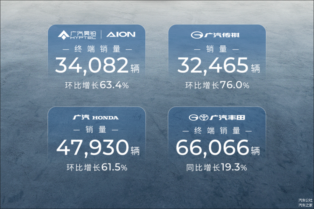而节前,广汽发布了上个月的产销数据公告,集团全月累计销售了17.39万辆新车,环比增长了76.2%;旗下汽车企业月销环比增速均超过60%。而整个一季度的销量则达到了37.11万辆。