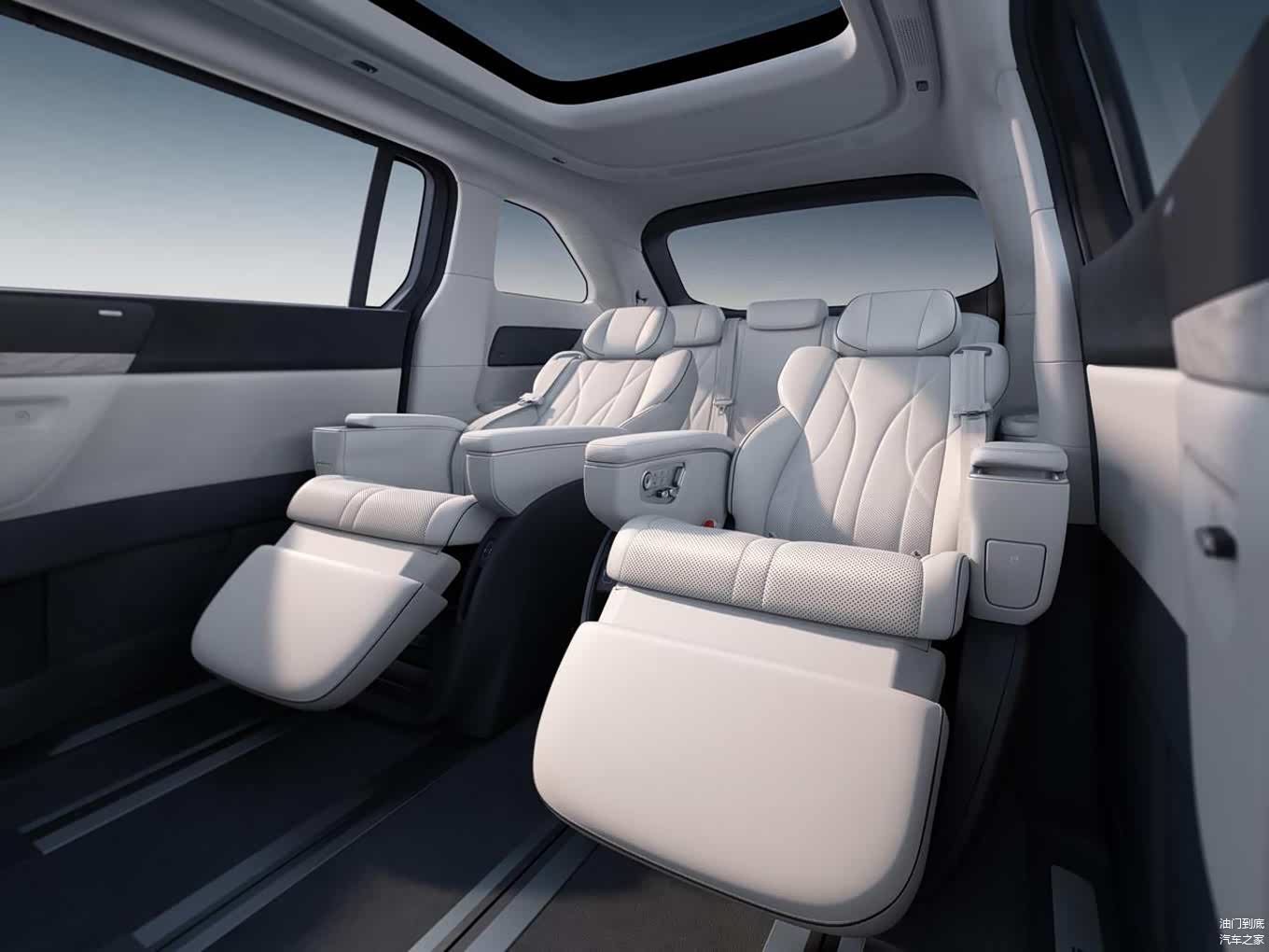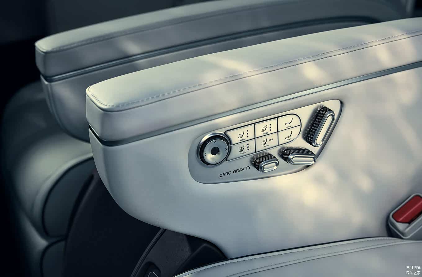 新车一/二排座椅标配10点式按摩,并提供16点式选装。第三排座椅支持180度完全放平,提供靠背角度和头枕无极电动调节,并配备坐垫加热功能。