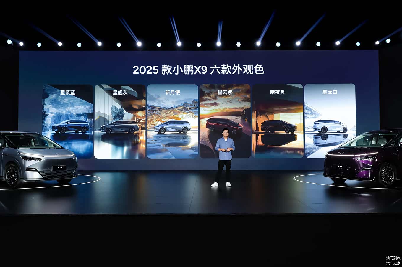 2025款小鹏X9提供6款车身色,以及气宇灰、月影咖、深空灰三款内饰主题选择。