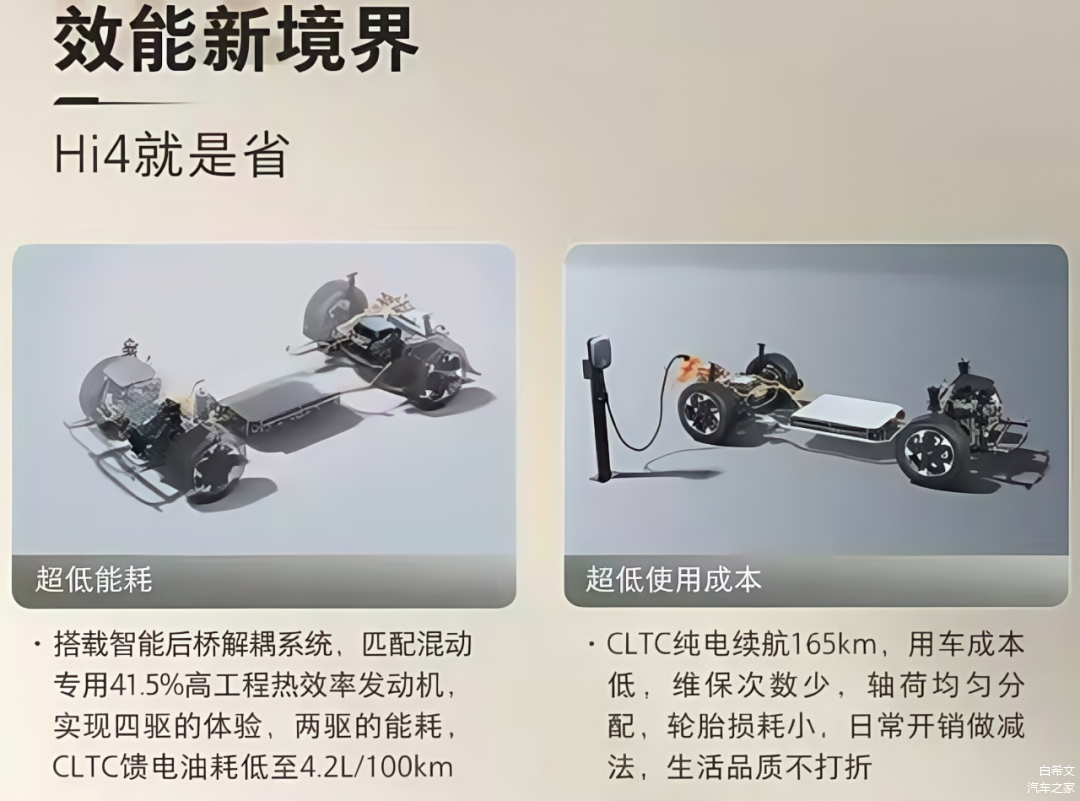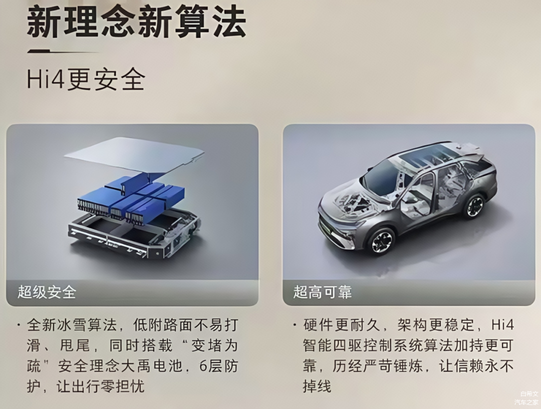 更值得一提的是,Hi4实现了“平权”。以往四驱是30万以上车型的特权配置,如今Hi4把四驱拉到了15万区间,甚至变成了某种“标配”。这种降维打击式的产品策略,直接把两驱插混逼上了价值天花板。你愿意花同样的钱,买一个只能跑城市路况的两驱,还是一个能跑山地、能脱困、能省油,还能护住全家安全的四驱?这个选择题在今天,其实已经没有悬念。