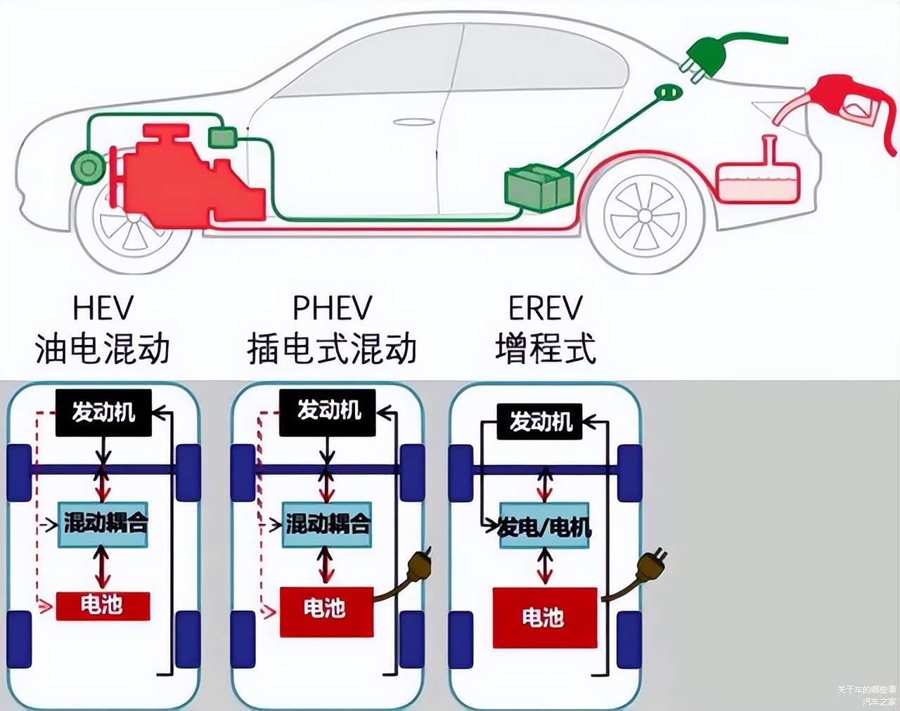 增程式(EREV):省油效果有限,电池坏了后反而更费油,适合对省油需求不高的用户。