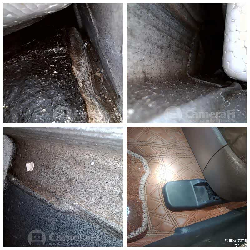 美中不足的是,此车跟大众一样,有天窗漏水的通病,虽然地毯地板没有泥沙水渍,但用内窥镜查看门槛空腔,能看到缝隙里面的水渍痕迹,周边的钣金胶都发霉了。