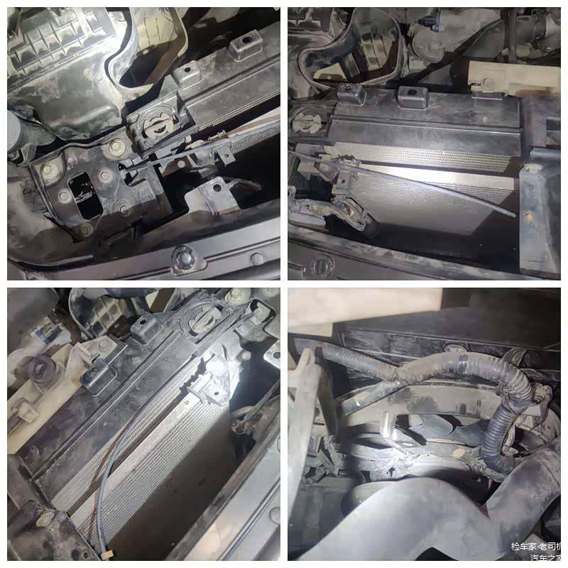水箱框架和散热器也有拆装的痕迹,看成色也应该更换了,散热风扇倒是可以确认是原厂的。