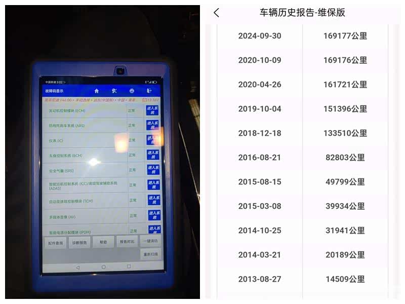 连接电控系统没有发现故障码,但维保记录的公里数数据不对,20年10月份就将近17万公里了,到2024年9月份还是相同的数据,而现在的仪表才13万多公里,是4S店录入出错了吗?我看是车贩子调表的可能性更大,真实里程怕20万公里不止。