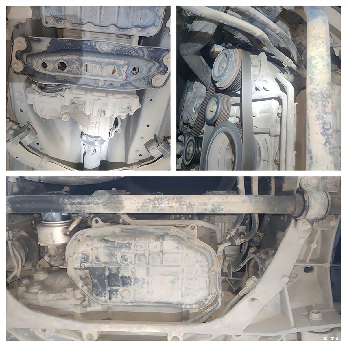 发动机和变速箱下方也没有拆卸维修的痕迹,原厂机脚都还没换,可见质量稳定性非常好。