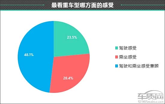 在衡量一款车型驾乘感受如何时,每个人所看重的部分不尽相同。在此次调查中,看重“驾驶和乘坐感受兼顾”的车主占比相对较高,达到48.1%。另外还有23.5%和28.4%的车主分别看重“驾驶感受”和“乘坐感受”。