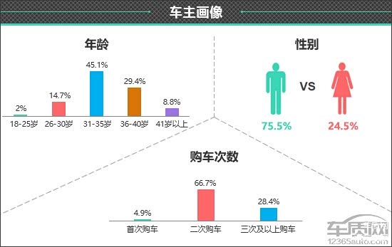 一、车主画像:中青年男性消费者为主 二次购车比例较高