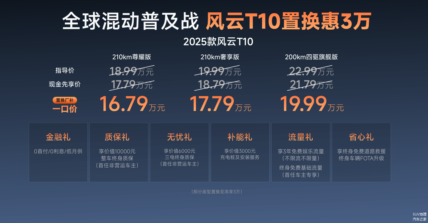 中国旗舰,再树标杆!4月10日,超长续航旗舰电混SUV——2025款风云T10于奇瑞“混动之夜”尊耀上市,以16.79-19.99的置换厂补一口价将中大型电混SUV旗舰标准推向全新高度。作为奇瑞风云扛鼎力作,2025款风云T10集超长续航、豪华舒适、全维安全等优势集一身,不仅重新树立了中国混动豪华SUV的价值标杆,更带来“8重豪礼”,开启全民旗舰新时代。