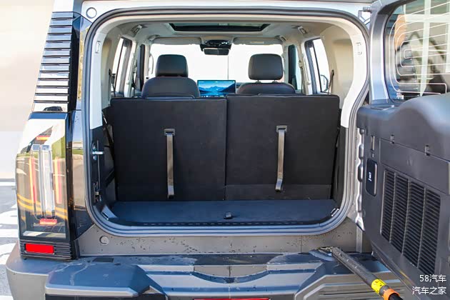 车尾部分同样延续硬派设计,侧拉式的尾门再加上小书包备胎,也都是硬派越野SUV的经典设计。尾灯部分则采用纵置设计,并且LED灯罩也进行了熏黑处理,带来不错的辨识度。