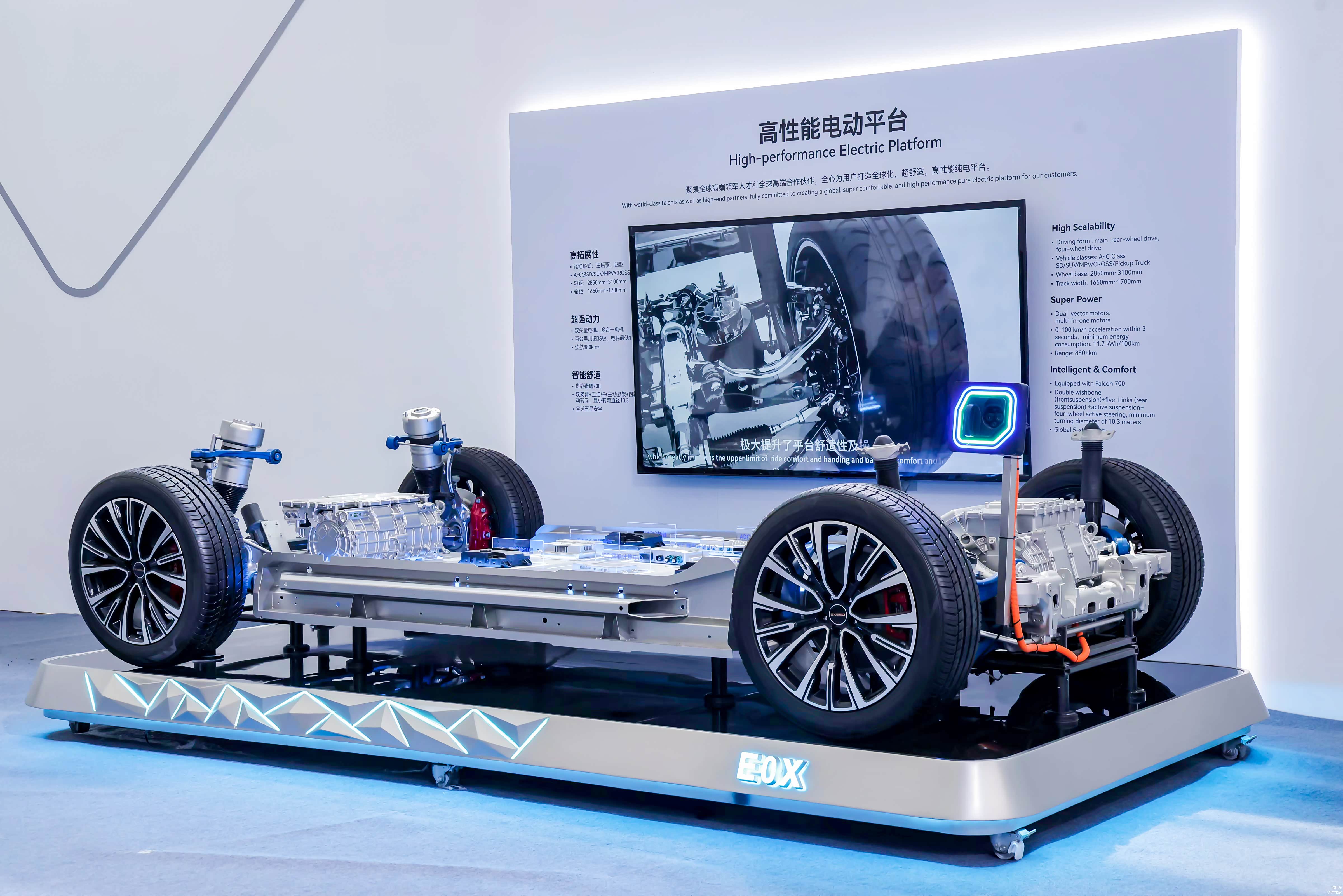 3、参数方面,高节能系列能做到百公里油耗低于3升,一升油发4度电以上;高性能系列搭载2.0TGDI混动专用发动机,实现全球混动最高功率280kW,以及全球混动最高电机转速24000rpm,而行业主流是20000rpm左右;强越野系列的亮点包括越野专属的新一代2.0TGDI混动专用发动机、矢量双电机和多挡变速箱,可实现最大功率200kW和最大扭矩400N·m,涉水深度高达1240mm,以及坦克掉头、浮水航行/蟹行等模式。未来,奇瑞还将推出新一代鲲鹏天擎混动专用发动机,可实现48%以上的最高热效率。