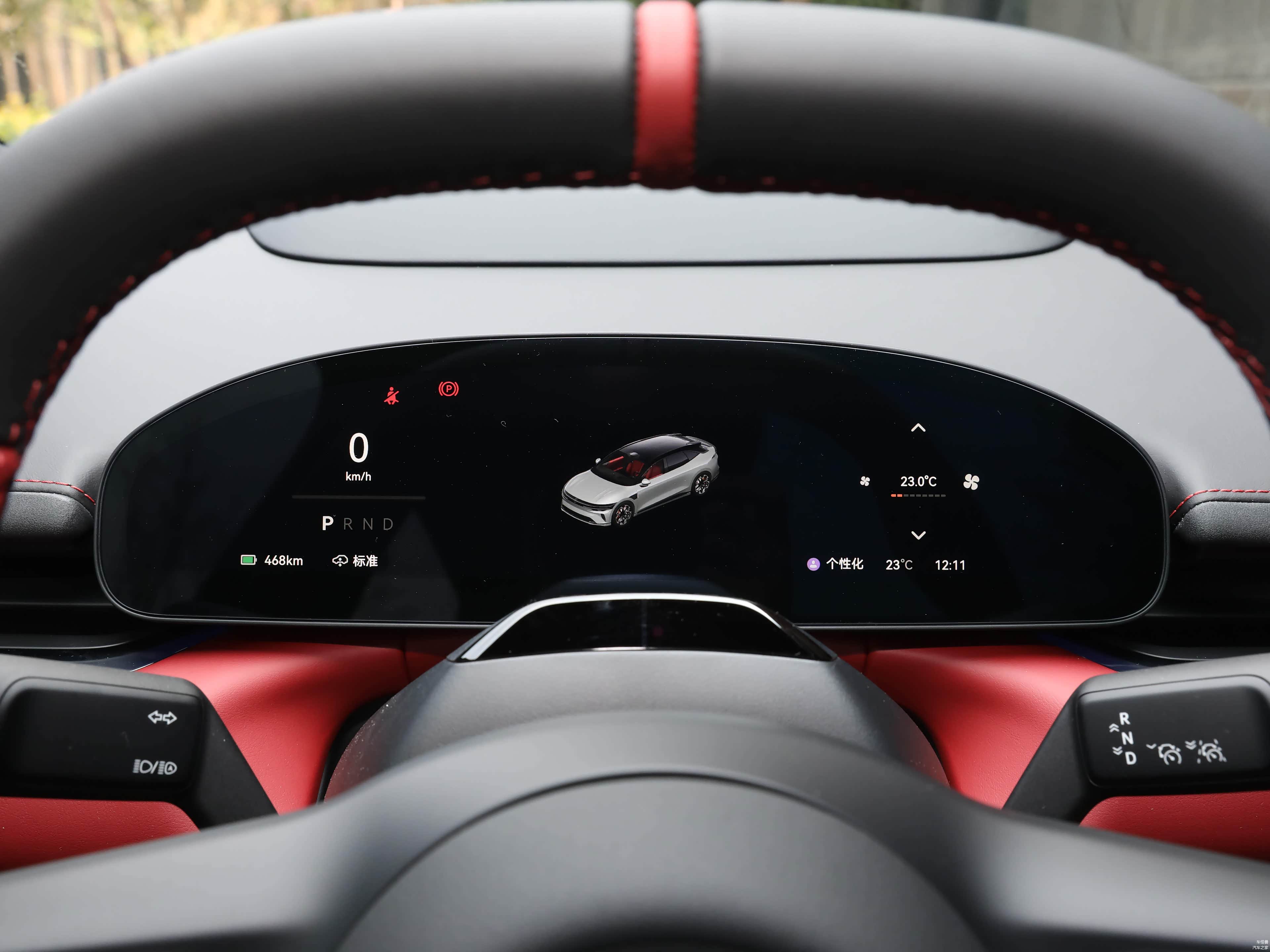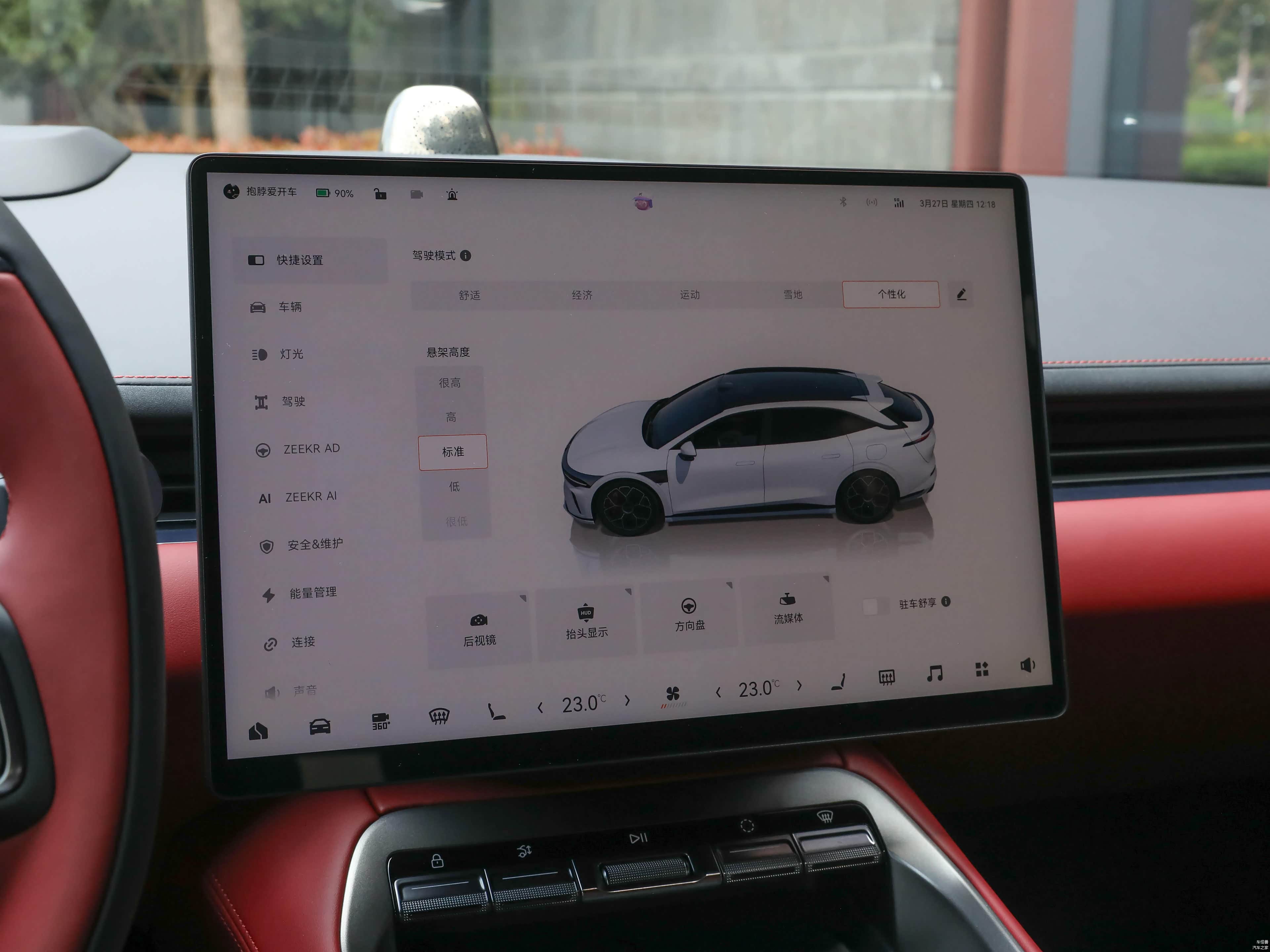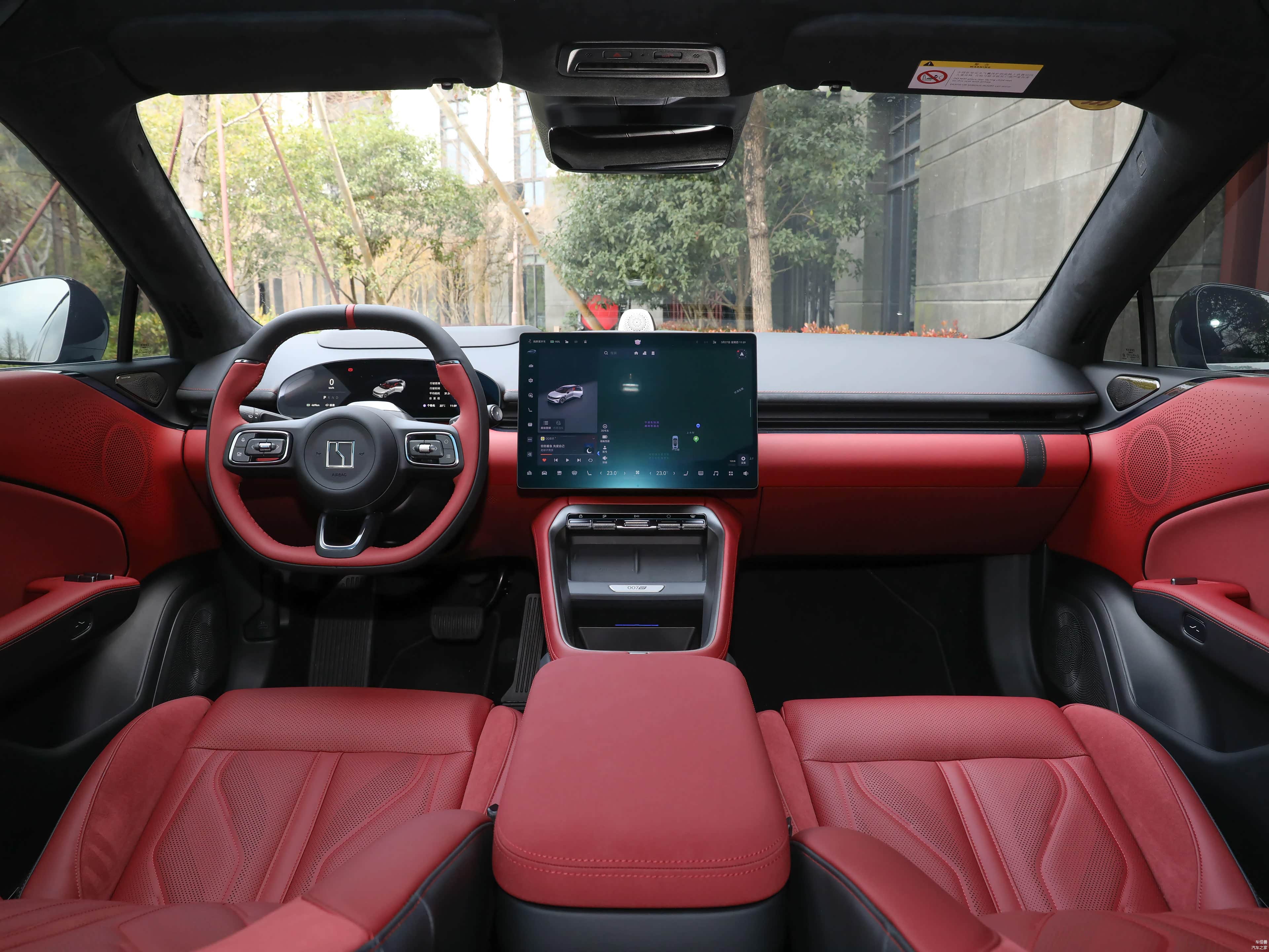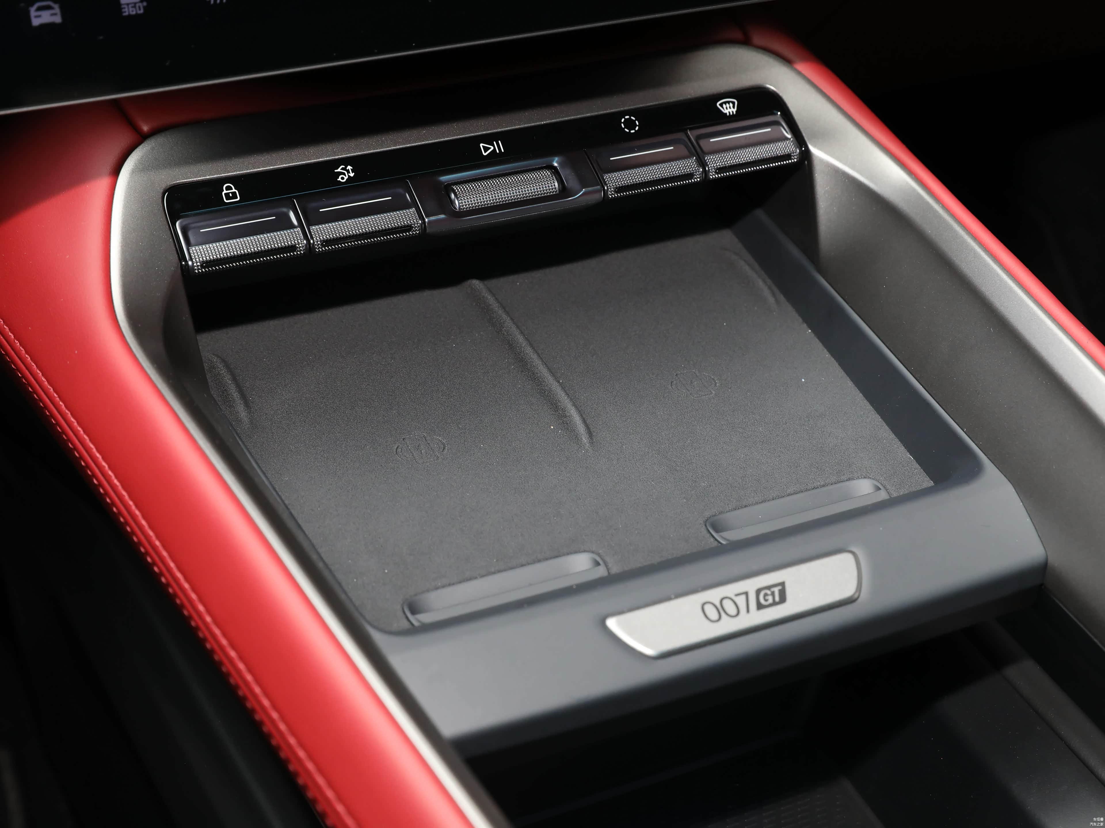 007GT在内部装潢方面延续了007的设计哲学,并在多个细微之处进行了进一步的优化和升级。方向盘与极氪7X在设计上有许多相似之处,它采纳了创新的三辐式设计,并为用户提供了黑色与白色、红色与黑色两种独特的颜色选择。中央控制区域配备了一个15.05英寸的2.5K OLED向日葵中控屏,该屏幕支持三向旋转,并配备了13.02英寸的全液晶曲面仪表和AR-HUD抬头显示功能。屏幕下方配备了一组物理按钮,这极大地简化了日常功能的操作。中控台下部的镂空设计为用户创造了更多的存储空间,从而使其变得更加实用。