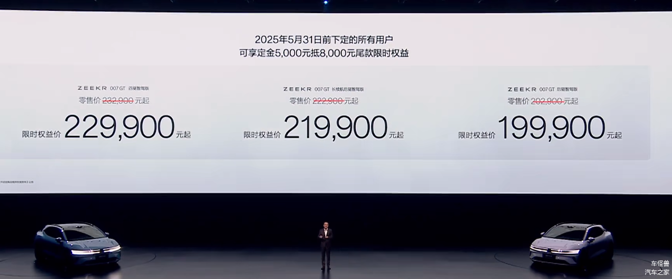 4月15日这一天, 极氪007GT(图片 | 参数 | 询价)正式揭开了其神秘面纱,并与广大的消费者群体进行了面对面的交流。这款新车推出了三个不同的配置版本,官方推荐的价格范围是20.29万元到23.29万元,而限时优惠的价格则更加亲民,价格范围是19.99万元到22.99万元之间。极氪007GT,作为极氪007系列中的高级猎装版本,被准确地描述为一款由科技推动的高端猎装轿车。得益于其独到的市场策略和卓越的性能,它与极氪001共同形成了一个双猎装车的组合,为消费者提供了更加丰富的选择空间。这款新车的发布无疑将为市场注入新的活力,并为科技驱动的轿跑车带来新的发展方向。