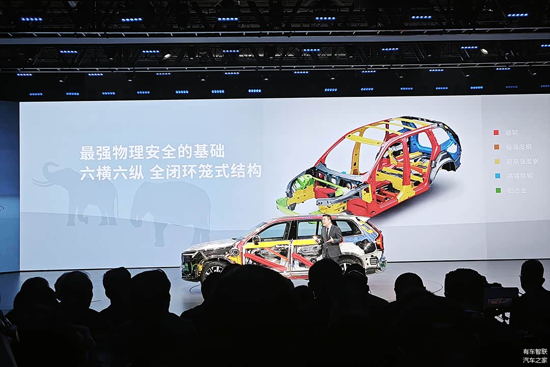 作为沃尔沃安全科技的集大成者,全新XC90以“30大安全标准”构建起立体防护体系。首先是结构安全方面,全新XC90采用“三路三区六横六卸力”硼钢笼式车身,高强度钢材占比达33%,其中A柱、B柱等关键部位屈服强度达1500MPa。并首创环抱式机舱上边梁与2.4米一体硼钢车顶纵梁,配合SPOC车身滑移结构,在25%偏置碰撞中可卸力30%,实现“丢轮保命”。此外,原生电气化架构采用“前油后电、电池中置”布局,规避高压电池碰撞风险。