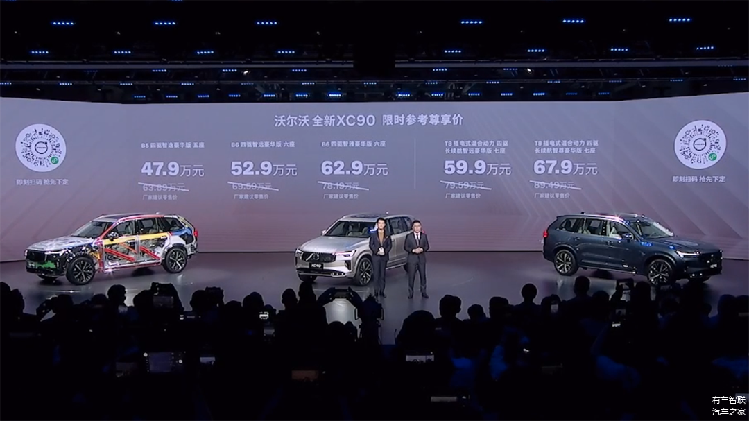 4月15日,沃尔沃全新XC90正式上市,限时参考尊享价为47.9万-67.9万元。新车提供B5/B6燃油版及T8插电混动版共5款配置,覆盖五座、六座、七座三种座椅布局,并同步推出限时购车权益,包含终身免费保养、核心部件终身质保等九重礼遇。全新XC90以“克制进化”理念,在设计、智能、动力及安全四大维度全面升级,展现北欧豪华的理性魅力。