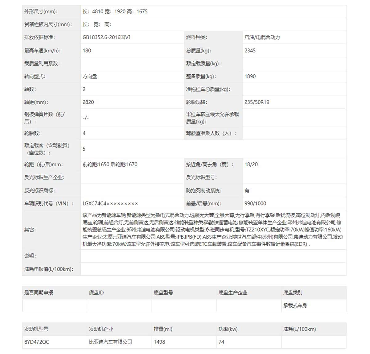 尺寸方面,这辆全新比亚迪海狮06的长宽高分别为4810/1920/1675mm,轴距为2820mm,属于中型SUV的尺寸级别,从申报信息来看,使用了5座布局。