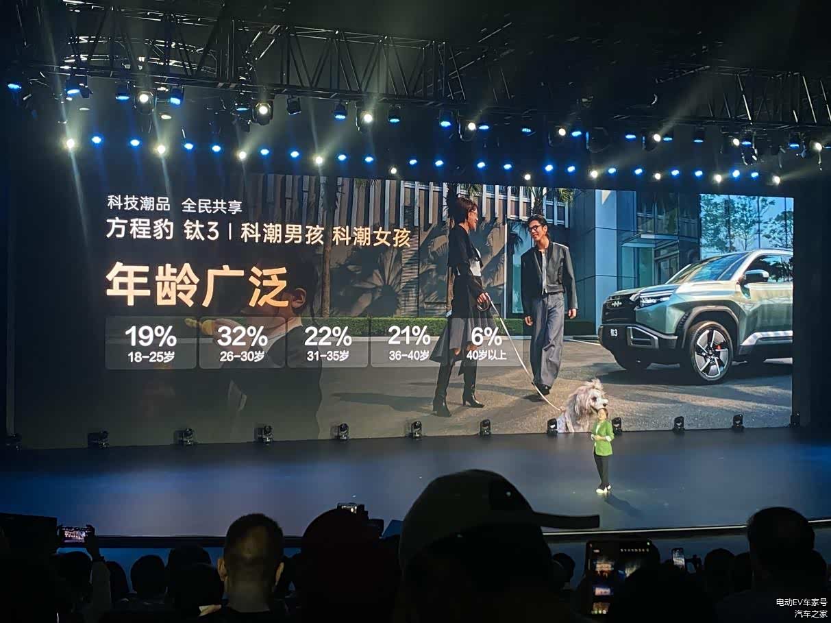 今晚的发布会上,方程豹总经理熊甜波也是对钛3的用户群体进行了分析:26-30岁的群体最多,占到32%;其次是31-35岁,占到22%。多为科潮男孩女孩。