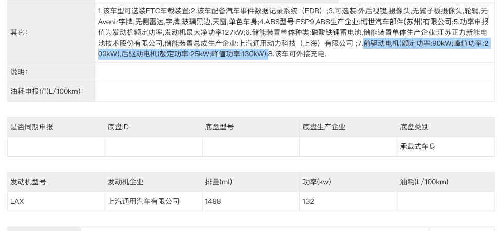 截至目前,全新别克GL8 ENCASA在工信部申报了3个产品型号,搭载由1.5T发动机和电机组成的插电混动系统。在此基础上,全新别克GL8 ENCASA两驱车型采用最大功率200千瓦的驱动电机,匹配40.9千瓦时磷酸铁锂电池,工信部纯电续航里程178/180公里;四驱车型配备最大功率200千瓦的前驱动电机与最大功率130千瓦的后驱动电机,在40.9千瓦时磷酸铁锂电池的支持下,工信部纯电续航里程171公里。