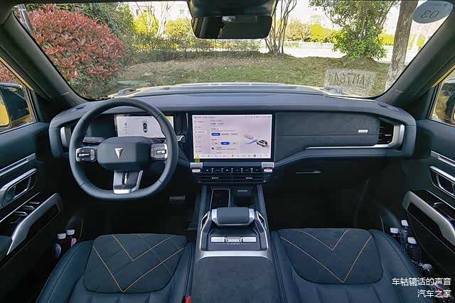 底盘为前双叉臂+后五连杆独立悬架系统,高配车型提供魔毯空悬+CDC,软硬高低可调,并配备全时四驱系统、双重差速锁、R-EPS转向系统,以及6千瓦外放电功能。