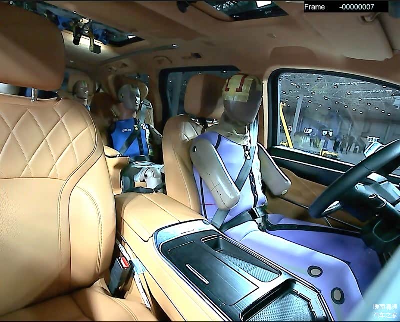 本次碰撞测试选取了典型的交通事故场景:车辆以15km/h速度正常行驶时,被误闯红灯的横向来车以60km/h速度高速撞击至第三排位置。为了更贴合实际家庭使用场景,测试车辆内部布置了角色化假人,包括成年男性、成年女性与6岁儿童,以及老人和婴幼儿假人。这种设计全面覆盖了家庭出行中的主要成员,让测试结果更加贴近现实。