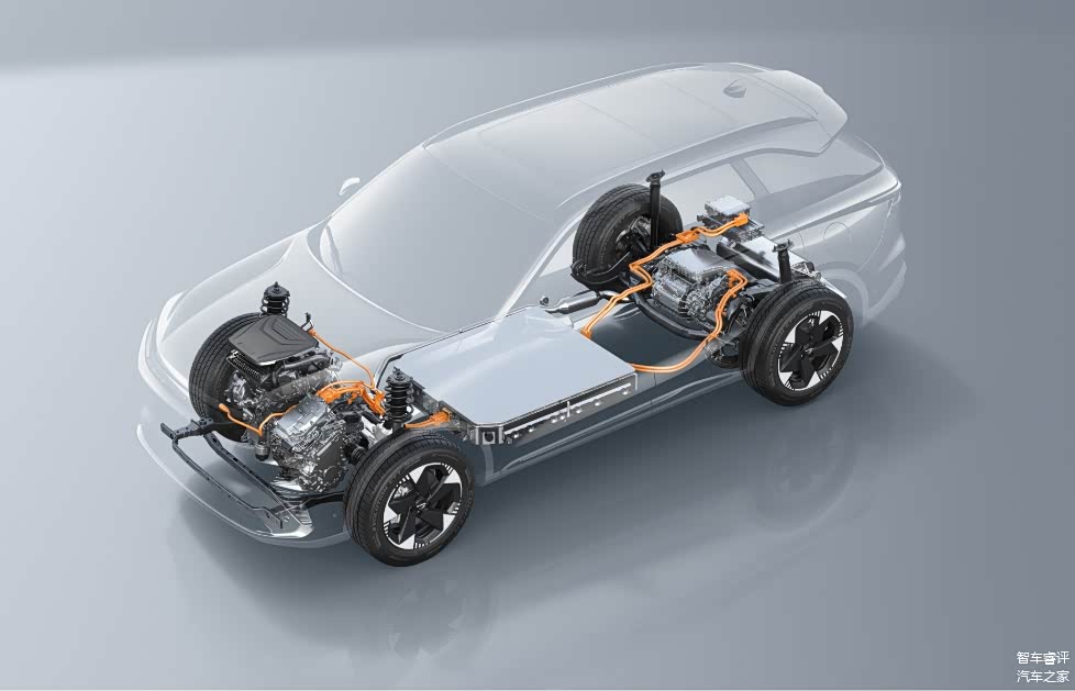 首先,入门款就有电四驱。前电机最大功率70kW,最大扭矩110N·m,后电机最大功率150kW,最大扭矩350N·m,系统综合功率238kW,综合扭矩595N·m。这样的强大动力,让车辆的百公里加速时间仅需要6.8s。