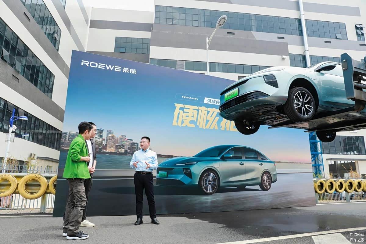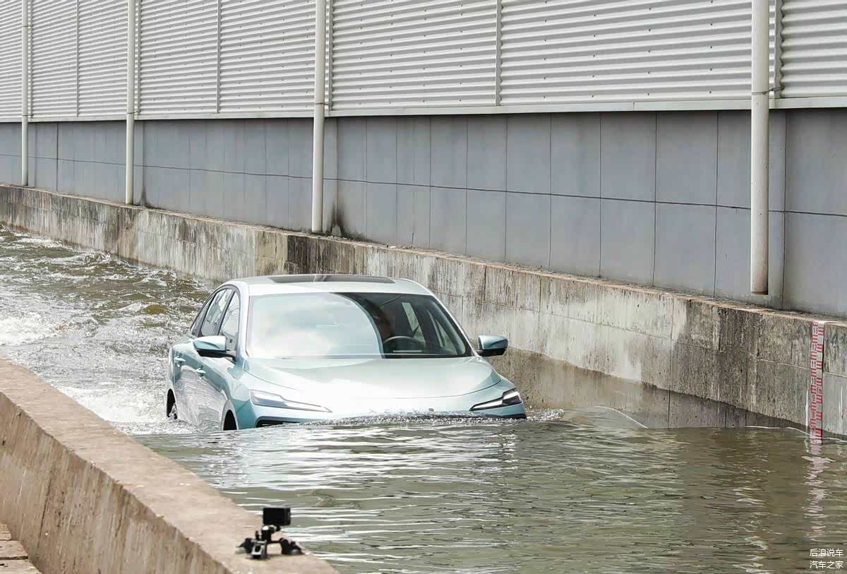 但是,荣威的工程师们显然想玩得更刺激一点儿,所以,在托底之后马上对这车进行了深度500mm的涉水测试,整个过程中电池包以及关键的电驱电控都浸泡在水中,考验的事整车关键核心部件的密封性和可靠性,结果在涉水行驶280米之后,没有发生任何起火和爆炸。