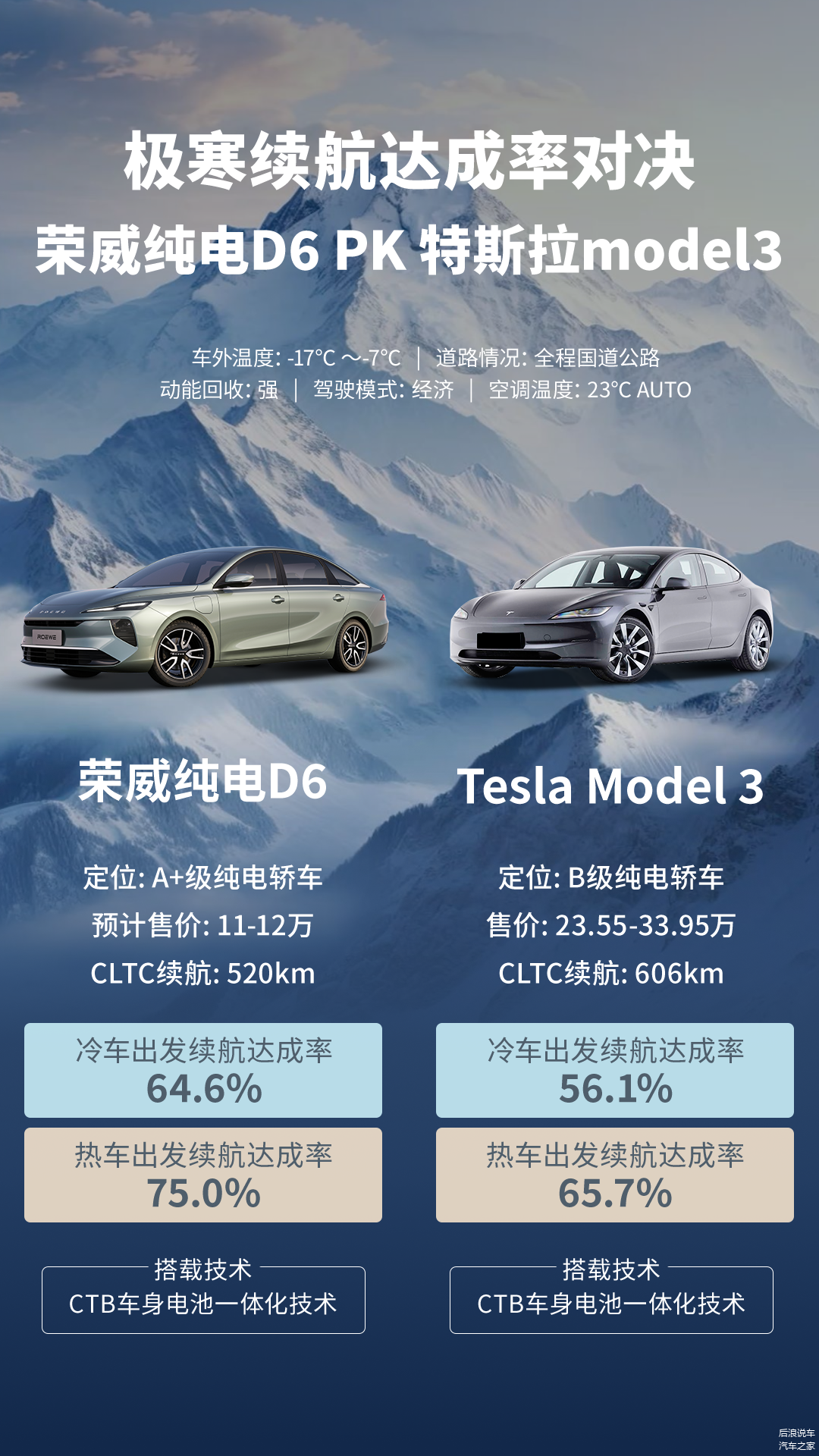 几个月前,荣威纯电D6相继在海拉尔和北方城市进行了续航测试,对手还是特斯拉。