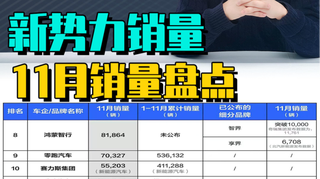 11月新势力销量:鸿蒙智行领先零跑,小鹏蔚来理想都没过4万辆