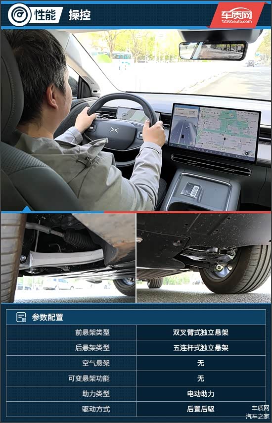 2025款小鹏G6搭载自研舒适底盘,采用HRS液压回弹减振技术。底盘配备双叉臂式独立悬架与五连杆式独立悬架,车辆通过减速带或坑洼路段时,悬架系统能够高效过滤垂直冲击,同时对细小颠簸的处理也十分细腻,滤震性能出色。