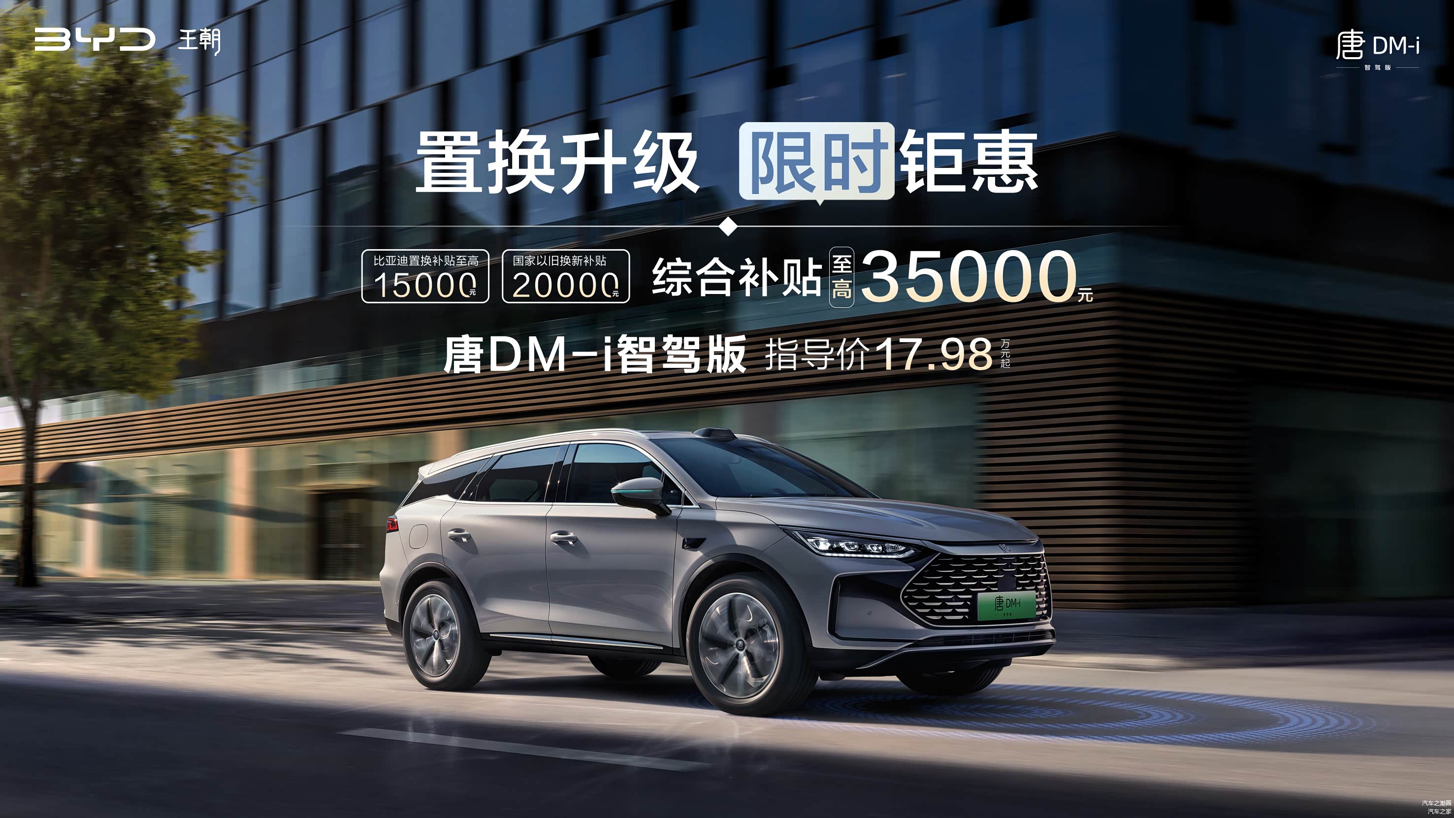 近日,比亚迪王朝网重磅推出“真金白银”的置换补贴加码,购买汉DM-i智驾版、汉EV智驾版、唐DM-i智驾版三款车型,均可享比亚迪置换补贴至高15000元,用户还可叠加享国家以旧换新补贴20000元,限时置换补贴至高35000元,迎来“抄底秒杀”最佳时机!