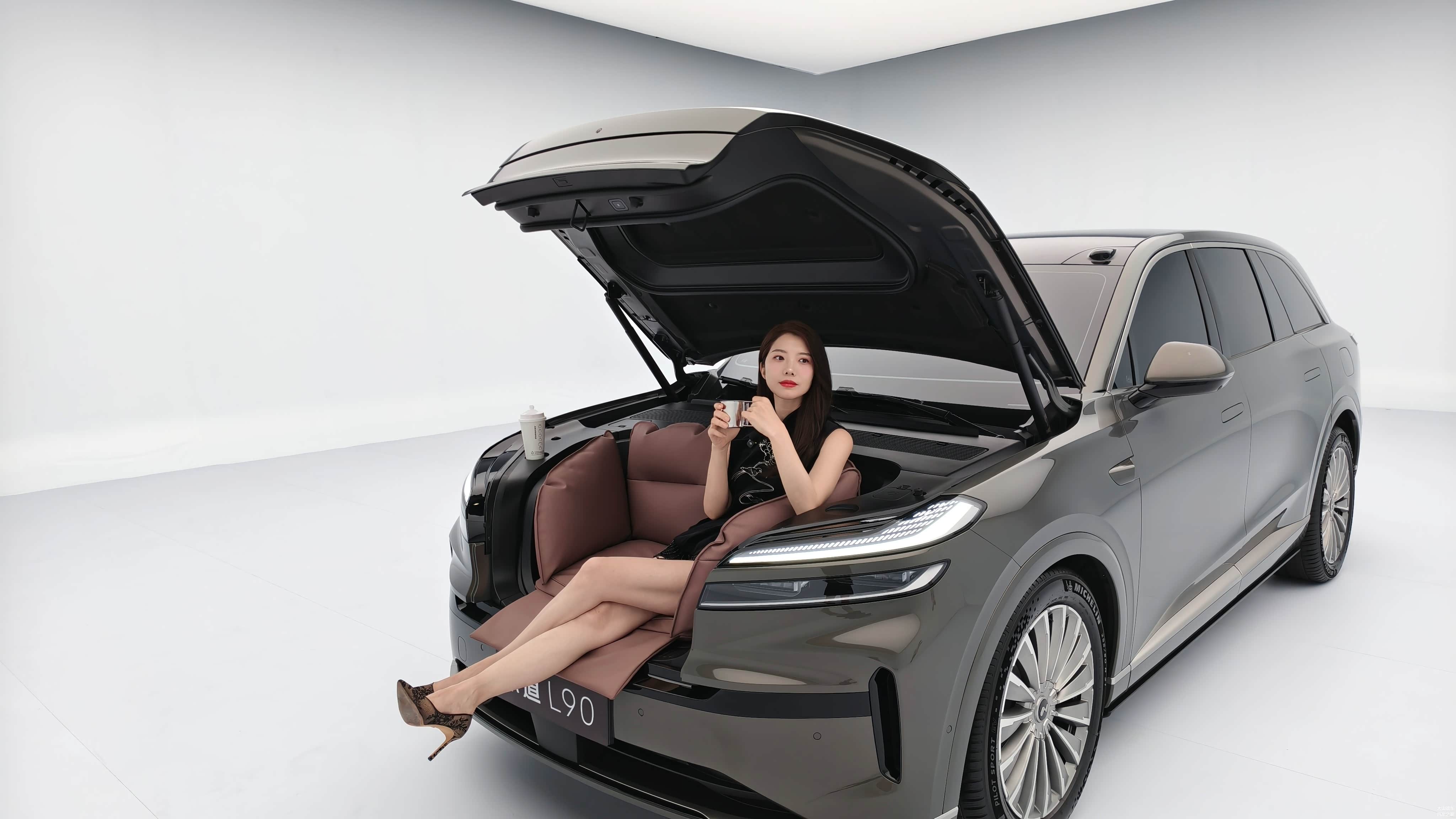 尺寸方面,作为乐道品牌的旗舰SUV,L90在车身尺寸上达到了全新高度。其长宽高分别为5145/1998/1766毫米,轴距3110毫米,这一数据甚至超越了蔚来品牌旗舰ES8,成为蔚来集团(蔚来、乐道、萤火虫)目前尺寸最大的SUV产品。从实拍车型来看,乐道L90配备了21英寸多辐造型轮辋,匹配米其林PS EV系列高性能轮胎,前后轮胎采用不同规格(前255/50 R21,后275/45 R21),这种配置常见于高性能豪华车型,能够提供更优异的抓地力和操控稳定性。