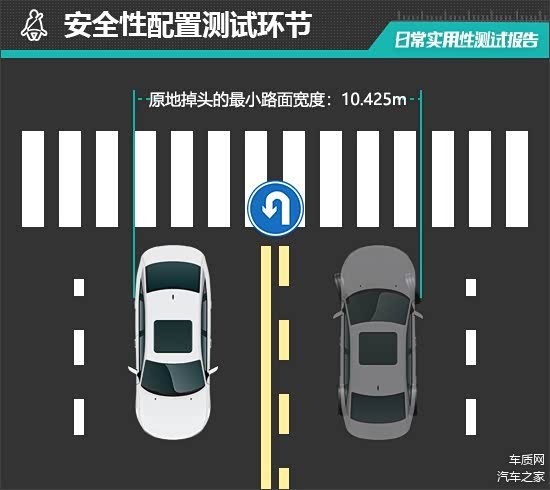 车辆在日常使用中,经常会遇到转弯或者掉头的情况,这个时候车辆的转向灵活性就显得非常重要了。了解爱车在原地掉头时所需的路面宽度,能做到心中有数,从而避免剐蹭等危险情况的发生。经过实测,评测车原地掉头的最小路面宽度为10.425m,处于同级别中游水平。